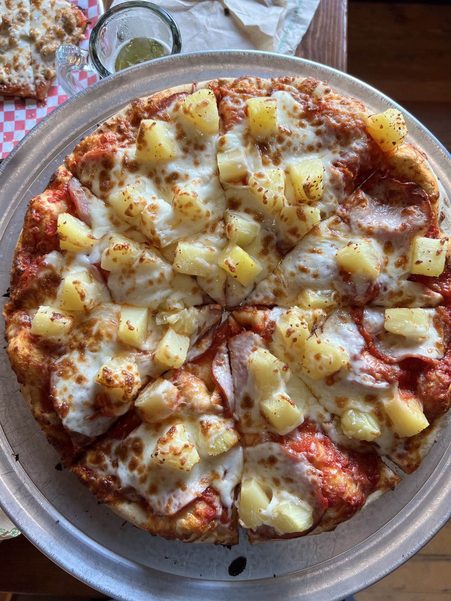 Read moreWe dine in and take home. Have had several of their pizzas. We recently decided to start a vegan diet so the owners have been very supportive and we get to bring some nuts in to put on our veggie pizza as our "meat". The pinapple chunks are huge! Crust are really great. Their toppings go All the way to the edge! All their pie's are so beautiful! The service is always warm and respectful, it's a husband & wife w/ weekend staff so you get treated like you matter. This isn't Dominoes so don't expect a soggy 10min cook time disc of 6 unidentified objects! Most times it's 20-25min. Just enough time to have something from the full bar that has damn cold beer and nice selection of liquor & wine. The stucco inside is pretty cool patchy rustic looking w/ a old wall mid to ceiling dark wood wine rack. For those of you that like to have a cigar? You can smoke'm on the covered patio and he has a few if you...