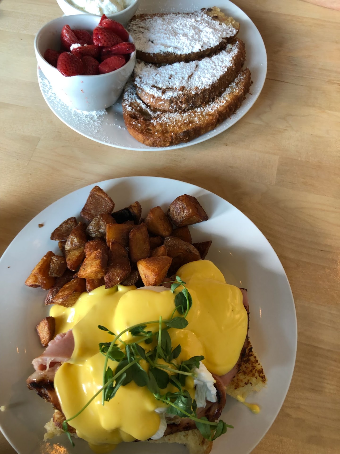 Food: Fire Chief Eggs Benny w fried potatoes The homemade slab of biscuit served with this dish was phenomenal. Soft and moist and perfectly grilled on the outside. Poached eggs were cooked to gooey perfection and the hollandaise sauce was well balanced lemon, butter, & salt. Just me being picky but I would love a non-pork option if they were able to add that in the future! Either way totally worth the indulgence.
