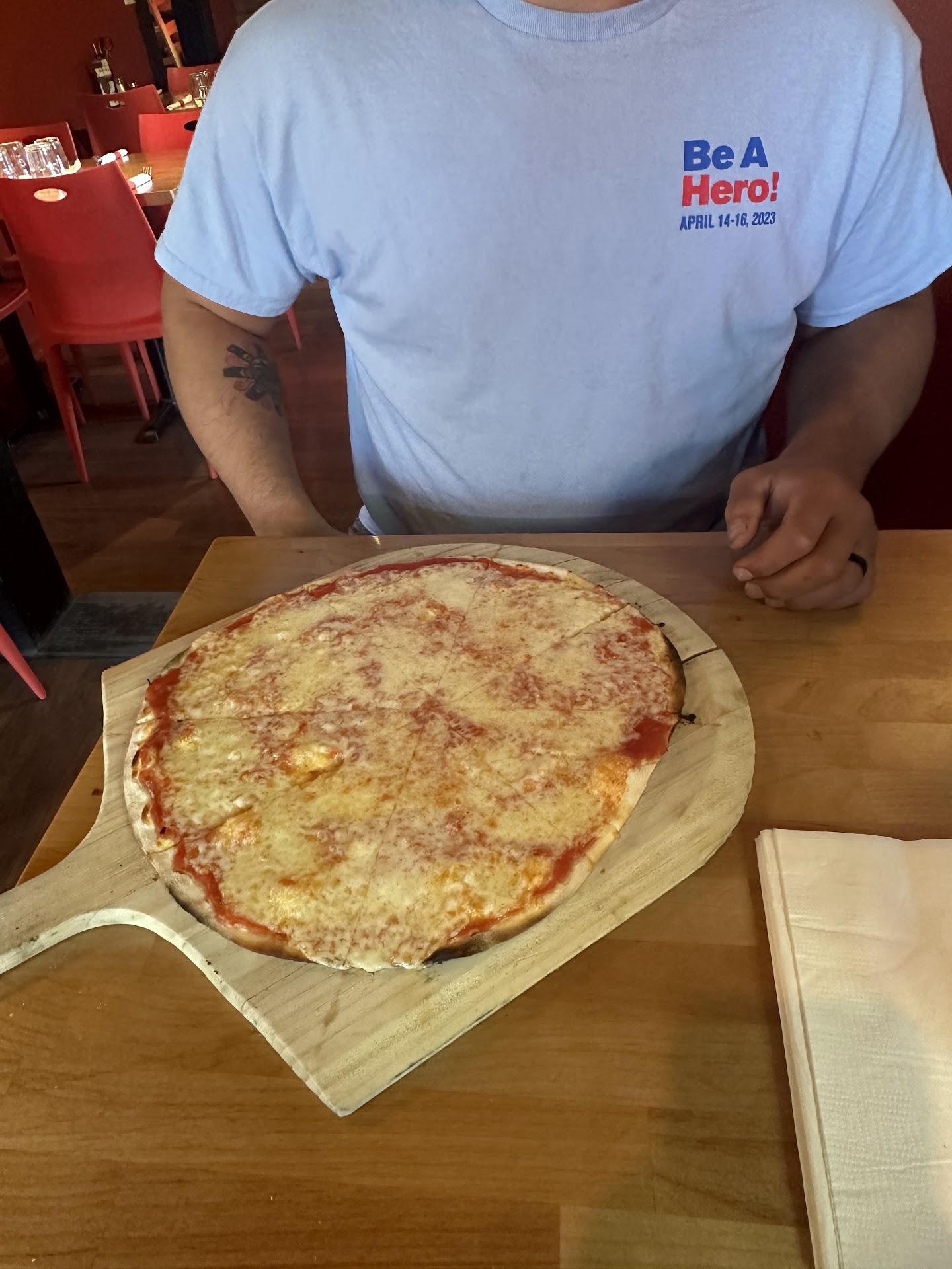 Read moreThe food is amazing. The service was by far lacking. I have eaten here twice before with good service. This time we showed up and the place had one person sitting inside and multiple tables outside seated. We sat inside next to the air conditioning. Shortly after we sat down others groups arrived and sat down. We did not get served first though others sat after us got served before we did. Aside from the person providing water but not taking any orders no one came by for 15 minutes. When we finally received service it seemed clear that the person waiting our table was not assigned to our table and just happened to have noticed that no one had yet served us. We asked how long it would take to get a pizza, she checked and returned to tell us 30 minutes. We said that we wanted a salad and two pizzas. We wanted the pizzas to go because we did not have enough time to stay and eat pizza when it would take so long. Given that other tables that sat down after us had already had their orders taken and in the queue to be made, we were not especially happen. We asked for the salad to be brought out because it did not have to queue up for the pizza oven. Well the salad arrived 2 minutes (literally) before the pizzas did, which put us at the time that we needed to leave. So instead of eating the salad we asked for it to be boxed up to go, but the waitress protested, we explained, and then she boxed it up. She did apologize, but then included excuses so it wasn't really an apology.