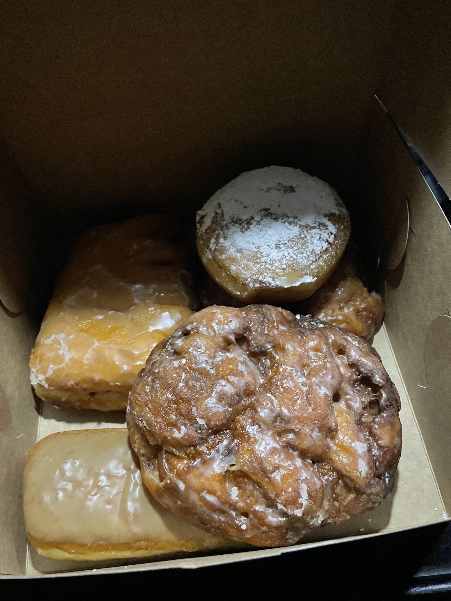 Read moreAfter reading some reviews, I finally decided to stop into this little shop Tuesday morning because I was craving donuts. From some recent reviews, it seems like donuts sell out fairly quick in the morning and I knew being pregnant, I probably would cry if I couldn’t get a donut. Parking kind of sucks, but that’s not their fault, I just wish there was more lighting especially with how dark it is walking from that parking lot to their front door. As I walked in, I was instantly greeted by a gal, at first I didn’t see anyone which concerned me, but I think she was counting something because she popped up very quickly. I ordered a half dozen of donuts (basic options: glaze donut, powdered sugar donut with lemon, 2 apple fritters, a maple bar, bear claw). I also ordered a 24 oz lotus and my total came out to $25.66, a little pricey but it’s supporting a small business so not complaining too much about price. When I got home, I instantly ate one donut and it was so fresh tasting, I was scared it might taste weird, I’m not sure why, but I’m glad it tasted just as I expected! Will have to return to the shop more during the day time because they have lots of cute things in their space such as designer jeans, baby outfits and binkys, some shoes and...