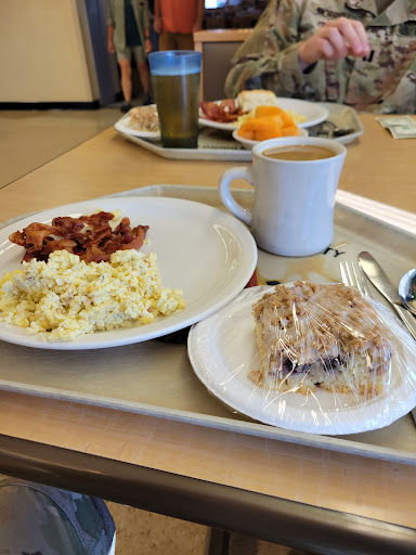 As for the food, it’s classic military fare—with a few pleasant surprises. While you won’t find gourmet touches, you will find dependable and satisfying options. The meals are thoughtfully portioned, served hot, and the selections rotate enough to prevent repetition fatigue. Whether it’s baked chicken, spaghetti night, or a simple breakfast spread, the quality is consistent and the flavors are better than expected for base dining. There’s always something to fuel up on before the next shift or PT session.