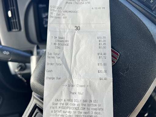 Read moreI was filling up the car with overpriced fuel when my wife went in for a small vanilla cone and a small blizzard; $11.18. Do not, I reiterate do not go into this Dairy Queen! A small blizzard at other locations runs around $3.69 and a small vanilla cone is around $1.99. They charged $6.39 for the Blizzard and $3.99 for the cone and of course CA tax of $0.80 (cents) for tax. This location is an embarrassment to all other Dairy Queens. I know people will have negative comments to this review but it is time to stand up against these type of establishments that simply "RIP-OFF" travelers! Just go up the road to Eddie's World; a much cleaner business, better staff and a huge varity to chose from. Pass this on to other travelers for a better experience...