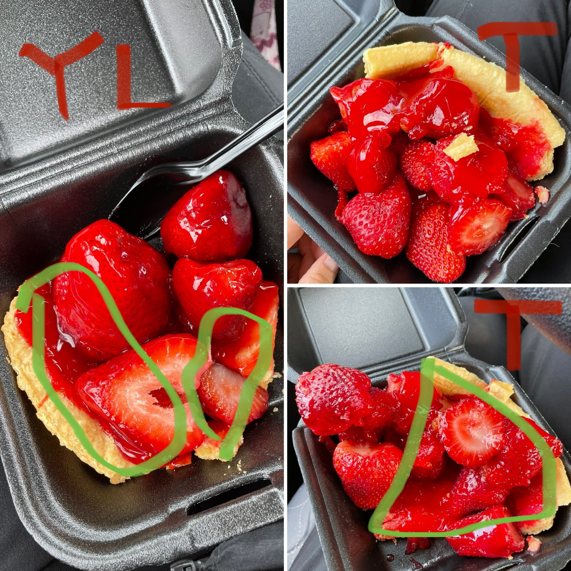 YL is the Yorba Linda and T is the Tustin branch. YL had the top crust and half of bottom was missing. So it wasn’t 1/4 size like you can see in T.