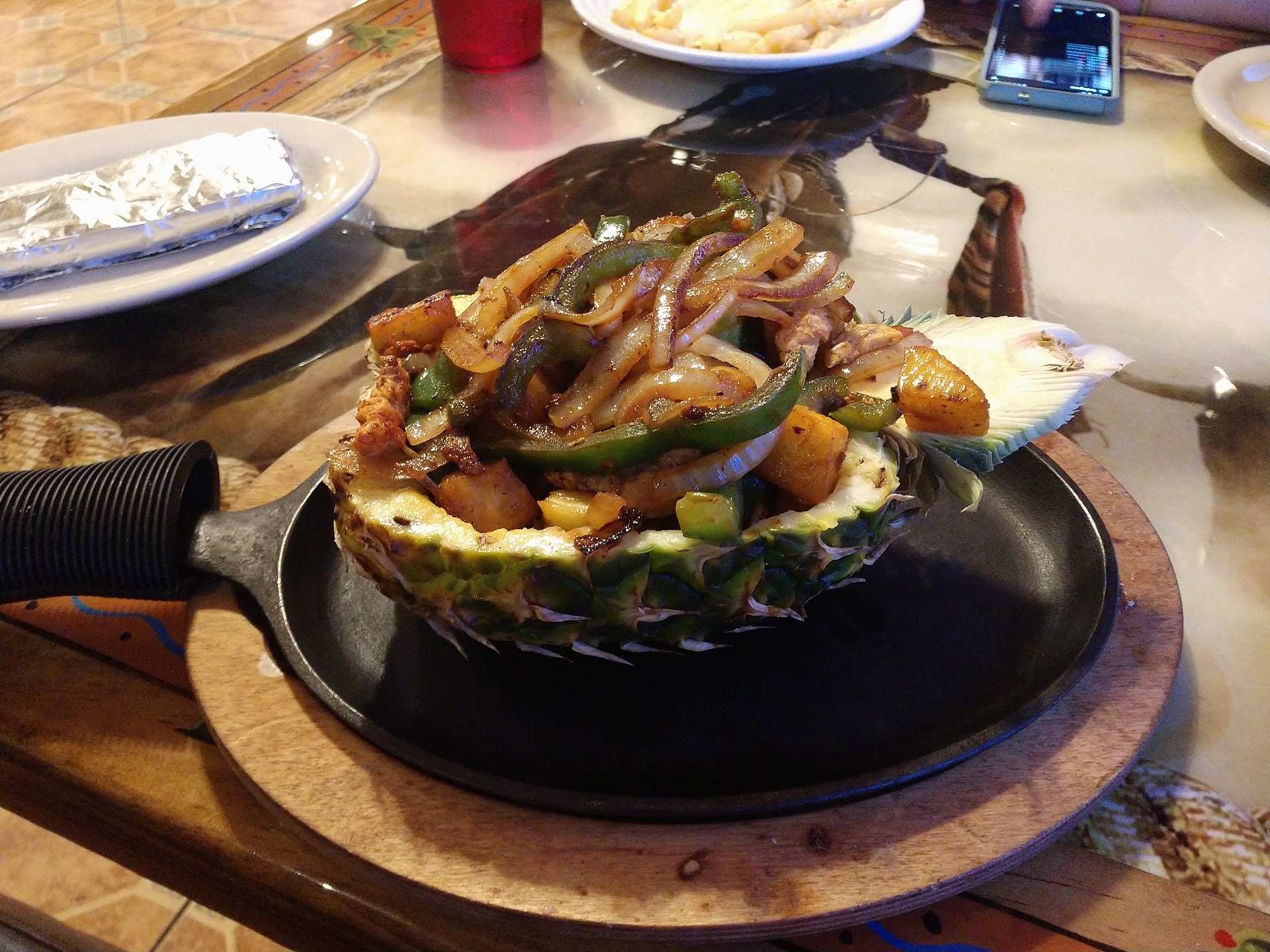 My wife had the veggie fajitas, essentially a scalding hot cast iron skillet piled high with peppers, onions, and the like. It smelled fantastic. As soon as it came to the table I thought, I hope she doesn't eat all of that because it is going to be a mean and lean omelet in the morning.