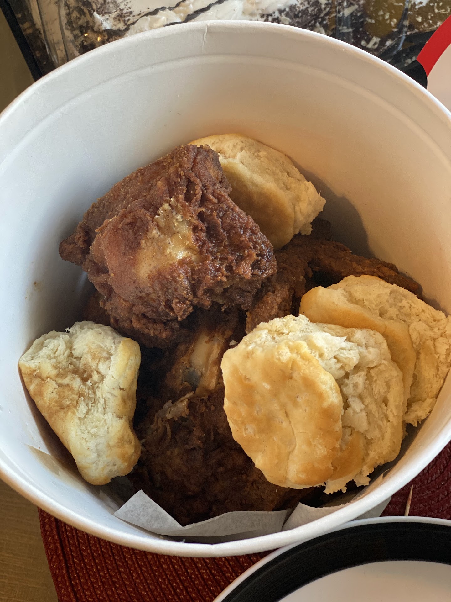 Read moreOrdered a 10piece feast. It was a joke. Supposed to come with 10 pieces of chicken, which it did. It was supposed to be extra crispy but was so wet and soggy it fell right of the chicken. Also included a large coleslaw, which was average and 2 large mashed potatoes. You would get better tasting potatoes out of a banquet tv dinner. It also included 4 of the driest, nastiest biscuits I've ever seen. They had the quality of Play-Doh. It also advertises that it includes a drink bucket, but we were given 2 large sodas instead. When asked, the man at the window snapped they didn't have any. It was also supposed to come with 4 chocolate chip cookies. But I can't tell you how they were because we never received them. And how much did this deal of a misery cost? Just a low price of $32! It's a rip-off. This location has always been subpar in the past, but we decided to give them another chance. No more chances. This location needs to be shut down or have better training for the workers. And no, they were...