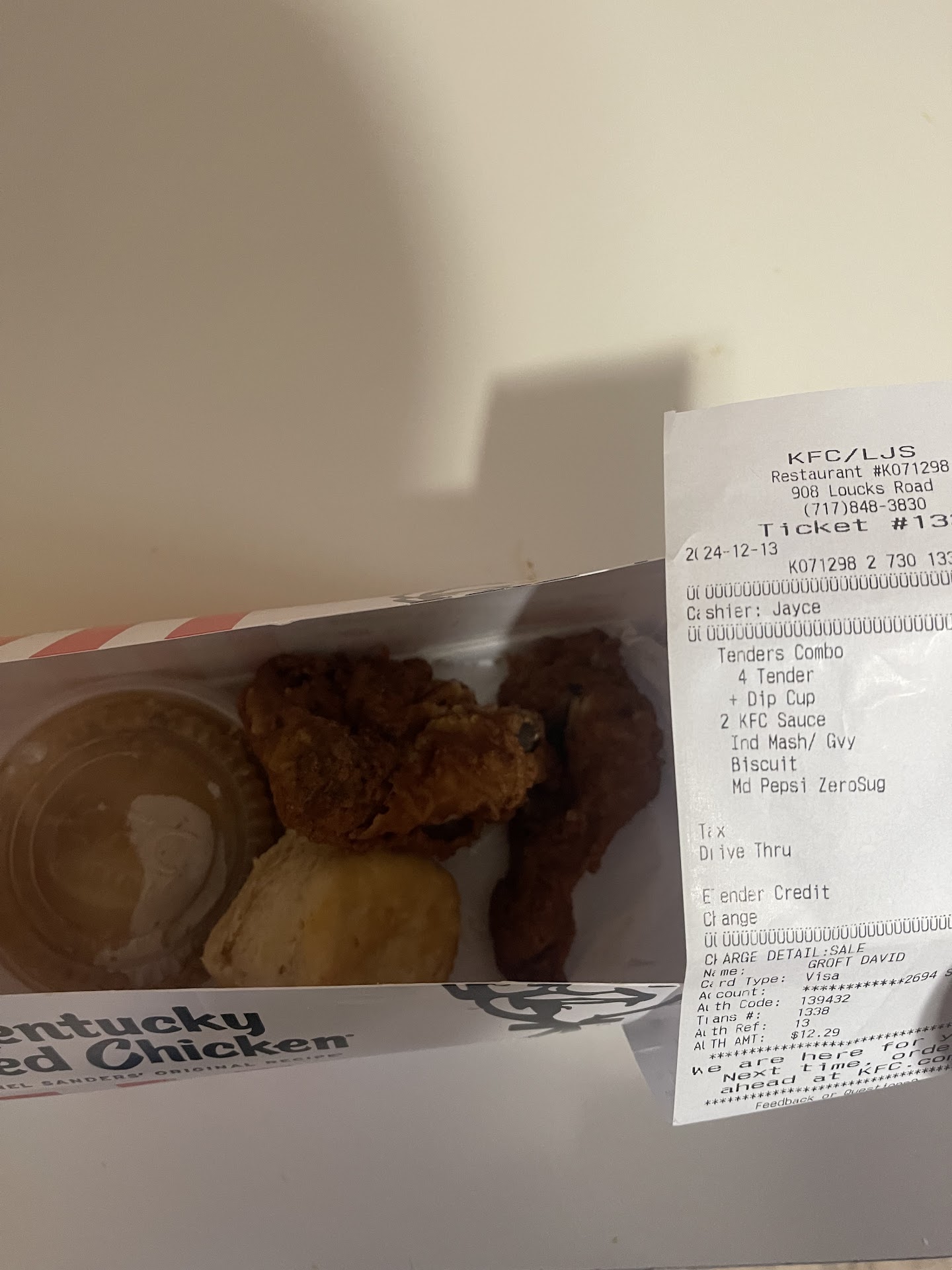 Read moreKFC in Loucks rd is disrespecting Chick-fil-A & Chipotle KFC is nasty because of the people that work there they suppose open at 10:30am the manager that opens the door shows up at 10:27am while the people that work there are waiting for him everyday management is always the last person to show up to the business and he is the one with the keys to to establishment while employees are waiting patiently 😂😂 is a mess in there, in my mind if you want a place to be run correctly you have to show up to your business at least one hour to one our in a half earlier for your business to be run correctly, I ask for extra crispy they give you original recipe man o man 😂not 😂😂place is ghetto not clean at all the business needs a renovation and love! The chicken is not fresh and you never get what you order made with love and most of the time they always have a ghetto post outside there door that says you have to used the drive thru can’t come inside, plus they have another sign out side the door that says exact cash or card!!😂😂😂😂 in 2024 that’s crazy!!!! this place is running itself don’t get me started employees smoking weed in the parking...