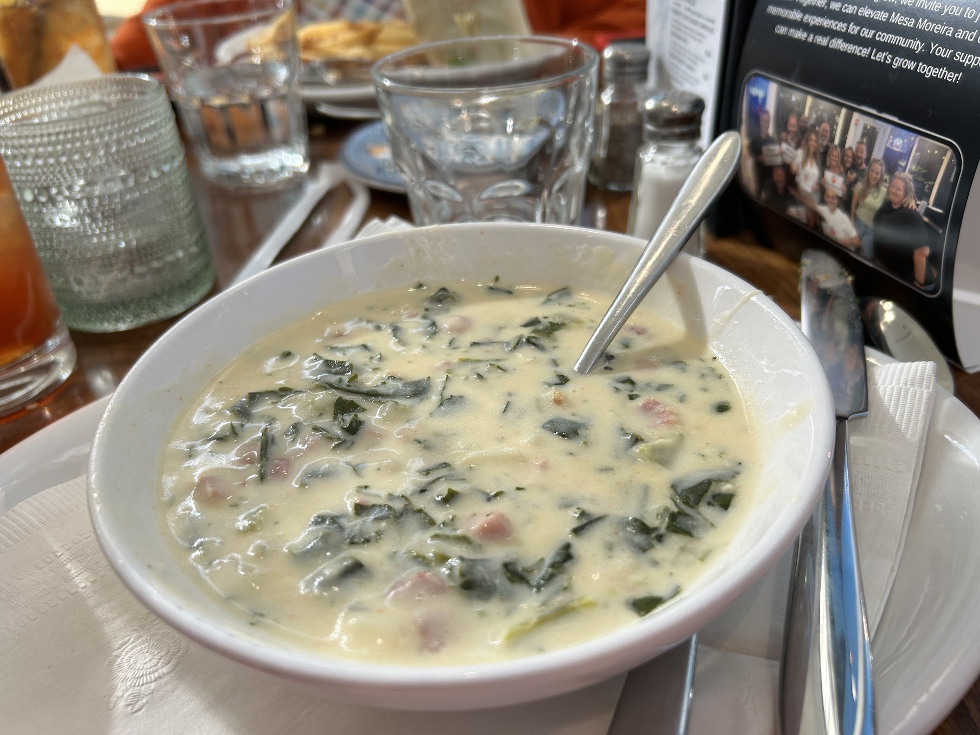 Read moreArrived at Mesa Moreira shortly before two o’clock on Friday. Our first impression was positive with clean inviting atmosphere. Decided to sit at one of the high back tables overlooking the dining room. Although it was after the lunch crowd there were only three or four tables with customers remaining. Even so, it took approximately five minutes before a waitress brought a cutting board with fresh warm bread and wonderful olives. It was a nice touch so reflective of a typical Portuguese or Brazilian meal. Several minutes later the waitress returned and took our order. Since it was our first time we ordered only appetizers. That’s when the initial positive opinions changed. Here is the reason; each of which were relayed to the waitress. Fried Calamari: Lulas Fritas – Clearly not top-quality product lacking a soft inviting flavor. Although there was a large portion, the calamari were too tough to finish. Even the scungili were too tough to enjoy. Shrimp in Garlic Sauce: Camarão à Guillo – Decent but nothing extraordinary. Grilled Portuguese Sausage: Chouriço Assado – Primarily fat and gamey pork, could not eat more than a few pieces. Portuguese Croquetes: Rissóis de Camarão e Pastéis de Bacalhau – Two croquets with two potatoes. The croquets had minimal filling and hard exteriors. Clams in Garlic Sauce: Améijoas à Bolhão Pato – The clams were so tough it was difficult to eat. Decided to leave it alone. Overall, the meal was significantly overpriced while lacking any sense of what you would get at even a lower tier Portuguese restaurant. Clearly the ownership was not interested in our comments since the waitress told him about our comments, but he decided he had no interest in learning the truth while making no effort to talk with us. We made it clear to the waitress we were not interested in any discount but thought he might like to hear some feedback. He chose not to, so perhaps others should learn the truth directly from us. It takes more than diacritics to offer European quality food. And last, we...