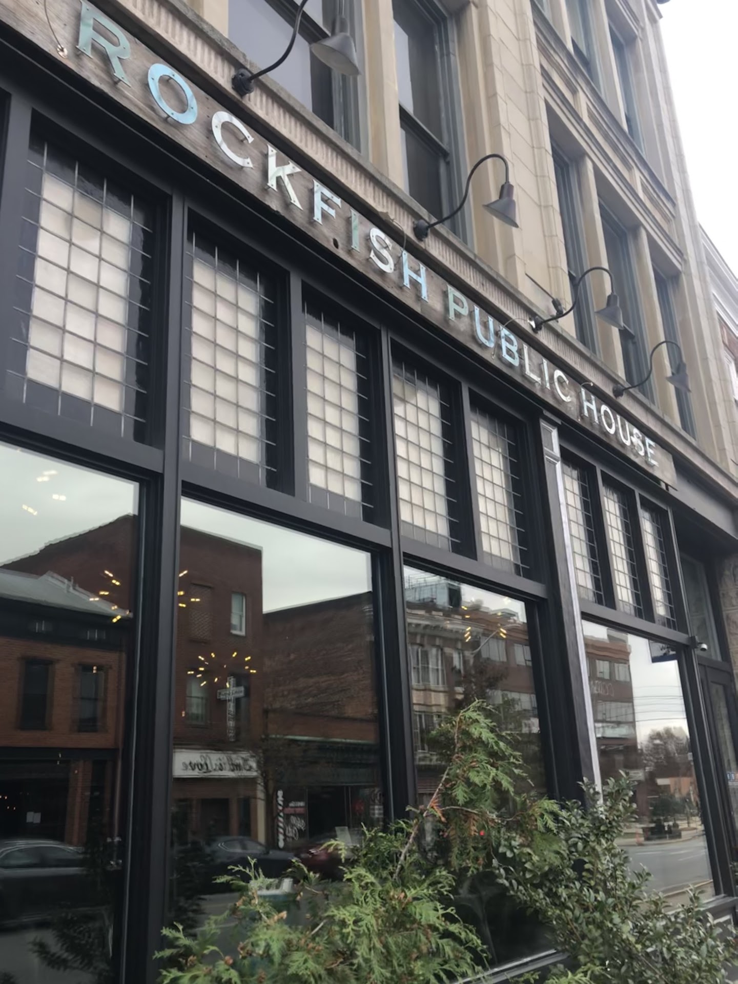 Read moreOk so Iâm not a fan of Rockfish Public House. Lots of high-top tables with uncomfortable steel stools. A bit dark and also noisy. Very industrial feel with corrugated tin walls and plumbing fixture lighting. Not to mention it kinda smells like a dock at low tide.