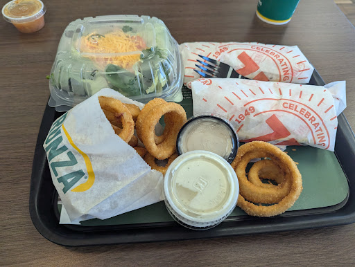 Read moreI give Runza 4 stars because the restaurant was very clean, service was very quick and the employees were extremely helpful, friendly and professional. This is our first experience with a runza. So after seeing the restaurant next to Walmart, we decided to check it out. The fries were good and so were the onion rings. I was surprised to find they actually salted them. For some reason restaurants are not seasoning food appropriately and it detracts from the enjoyment of eating. Fried foods must be salted as they come out of the fryer. Anyway we liked ours. We tried an original runza and an onion, mushroom, Swiss runza. They reminded us of Philly cheesesteaks in a soft roll. The fillings were pretty tasty and so was the roll. I felt the roll was too soft and somewhat doughy. I ate the meat and tossed about half of the roll. My husband ate his completely and said he enjoyed it. I can see why people love them, however I was disappointed and probably will not go back to a Runza Restaurant. The chocolate chip cookie ice cream sandwich was very good, however, and I might be persuaded to run into a Runza for one of those...