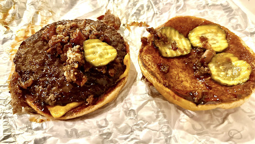 This most recent trip was the one that made me decide I’m done. I got the new pulled pork cheeseburger. They seriously put the burned up bits off the bottom of the pan on the sandwich. Again just a sprinkle. Look, if this sandwich cost $3 dollars I’d excuse it. But $7! Talk about shrinkflation. So yeah, that’s enough of my time and money wasted here.