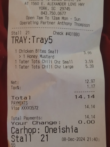 This York location is hands down the best Sonic around. I'm not just saying this because their food and service here are great, I'm saying this because I have an inside scoop. Your see, the General Manager, Paul Gills, is my neighbor, and a wonderful one at that. I live with the other two managers, Sarah and Russell Brown. So you might think that I'm writing this good review because I know the managers. Nope. The inside scoop that I have for you is that, because I know the managers, I can tell you that this store has quickly become one of the higher ranking stores in the district. This Sonic IS the highest performing store in the district as far as general management is concerned. It's kind of a new store and it is in a smaller town - York - so you wouldn't think it would do the volume that it does, but it does well. Even when they are slammed, you won't wait long. They will still meet ticket times and food quality will be spot-on. My favorite is the #4 Toaster Combo with an Oreo Blast. The Toaster Is Texas Toast hamburger sandwich with cheese, bacon, lettuce, tom, onion, pickle, mayo, and it's kicked into gear with a homemade fried onion ring - that's right, onion rings made FRESH EVERY MORNING! This homemade sweet battered onion ring is decadently placed on this delicious sandwich with love and touched off with a just the right amount of Sonic BBQ sauce. IT'S WORTH CRYING TEARS OF JOY OVER! I recommend this sandwich to any sandwich connoisseur. Bring a tissue for your tears. You'll be ready to go to confessional because you are gonna feel like you have committed sin when you eat this sandwich. In closing, I just want to tell you that I know first hand how committed and passionate ALL the managers and employees are at this York location. Their Food Runners are well trained do a great job. They are always nice. And listen, if there was something wrong with this store or the food, I would know about it. Like I said, I live with two of the managers and they talk about the store everyday in a way that is productive. They love this store and they love what they do. I'm 50 years old. I have managed Retail stores and I can see it in them. These guys genuinely care about this York Sonic. As long as these guys are there, I wouldn't hesitate to recommend this...