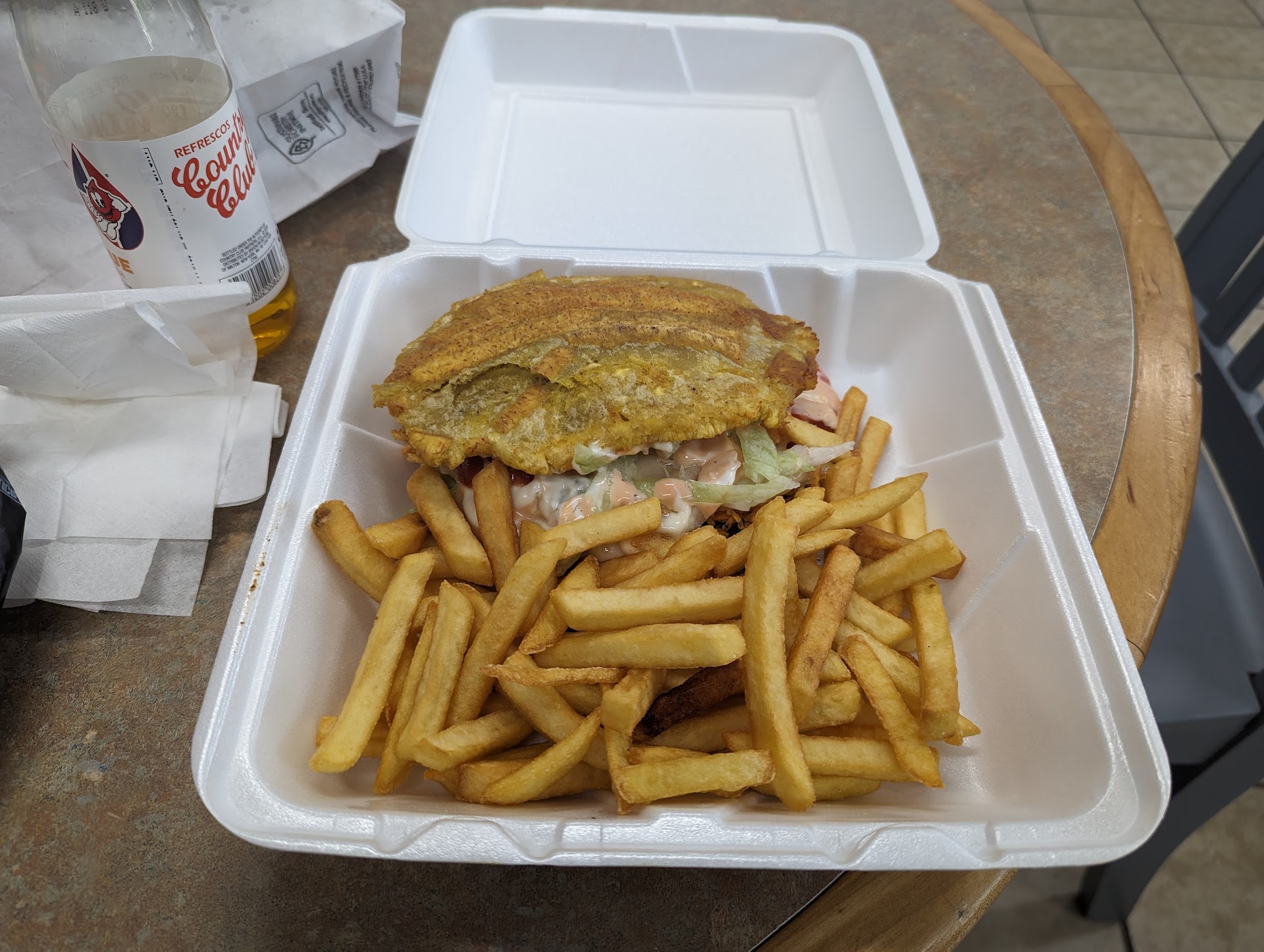 Read moreSomeone needs to show these people that u can't cover fried food or it will be soggy from the condensation. Also way over priced for small portions and poor quality taste. Don't waste your money. It's not worth it. Food looks nothing like the workers are posting in reviews. Chicken was soggy and breading coming off the chicken. Plantains were very soft and soggy, never again. I noticed most 5 star reviews are also from employees or family....