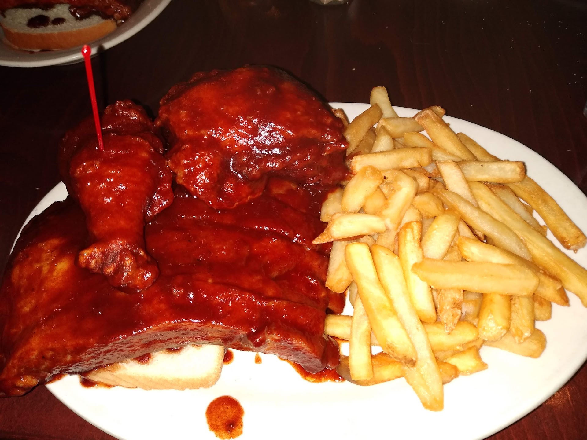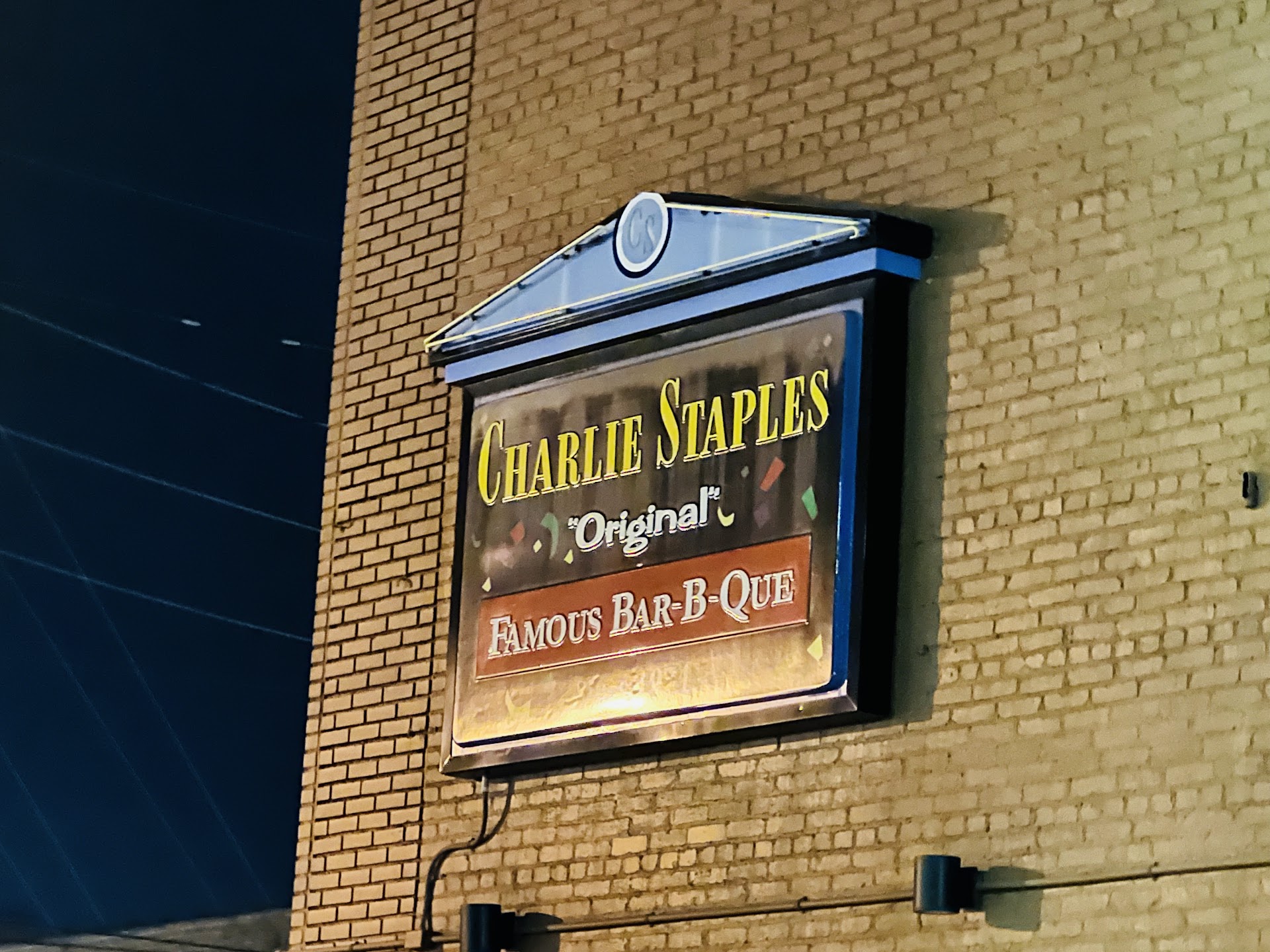 Great place. Ribs and chicken shown is with their original tomato based sauce. The new "Cowboy" is much better Update 10/11/21. I was going to go to Charlie Staples tonight but I see a huge difference in price between their own website and their takeout portal. What caught my attention is a full slab of ribs dinner is now $40! A slab by itself is $30. They are charging $10 for 2 small sides! Seriously? This is now over the top. I can't pay $80 for 2 slab dinner's, not including tax, tip and beverage. Now we are at $100+! Too many other places. Too bad, I loved this place 😐