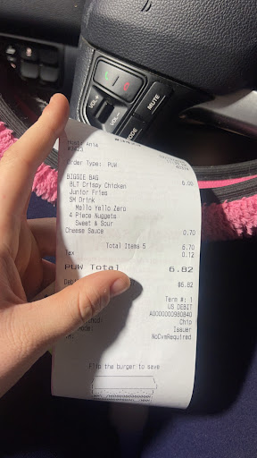 My order came.ouy very quickly. The food was very good. I loved it and even the Coke Freestyle machine was well stocked with syrups which I don't always see. The only negative aspect of the whole trip was my service and it was quite appalling. Your employess are literally staring at and acting annoyed by the customers they have to wait on in the store, making people like me feel guilty for wanting to get food. This seems to be a growing problem at your and many other restaurant post covid. Seriously, next time I might just go to Burger King...