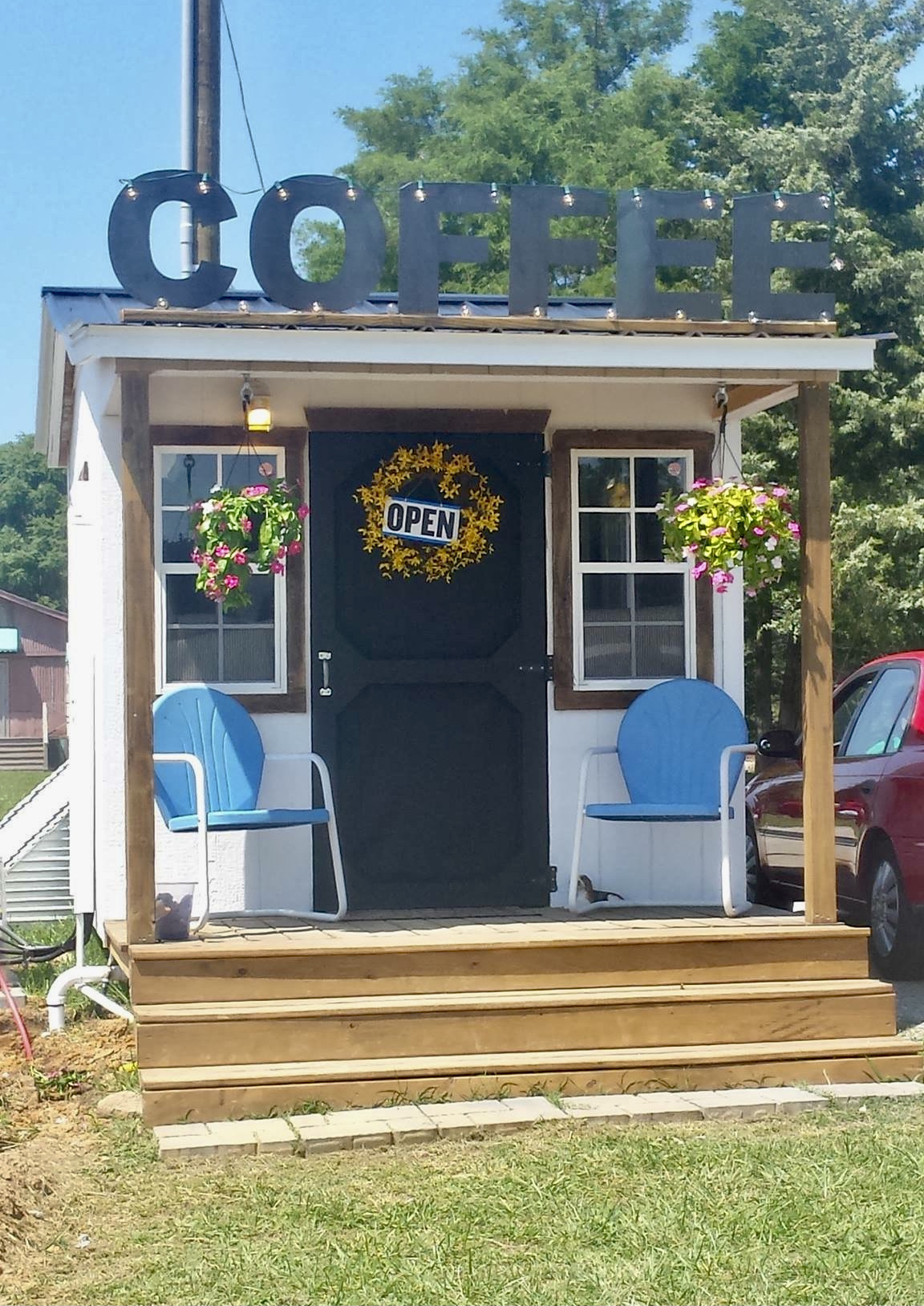 We moved to Youngsville, North Carolina in June, 2017 looking for that small town country feeling area we would hopefully call home. I was tickled to discover that this very small building was going to be opening up as a coffee shop one month later in July. What I loved initially, besides the great coffee, was the fact that it is a family-owned business and that the owners, Karen & Ryan Lindsay were veterans. I didn't know anything about their family history before visiting them. Of course, I had to check out their website which gave me a clear understanding as to the reasoning behind naming their shop "Packhouse". The family grew up on an old tobacco farm that has a Packhouse, which used to be used to pack tobacco. Karen's dad turned it into an area to hangout afterwards. The place is full of memories stapled to the walls; ticket stubs, pictures, jokes, memorable nic nacks from family trips, and so much more. The family’s story is depicted on the walls of that Packhouse.