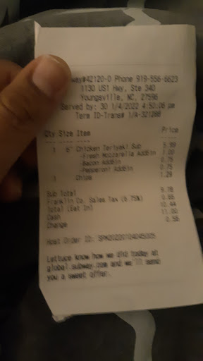 What makes this worse is we went less than a mile away to the one in downtown Youngsville and he had no problems ordering his sandwich the way he wanted to there, so going forward we will be...