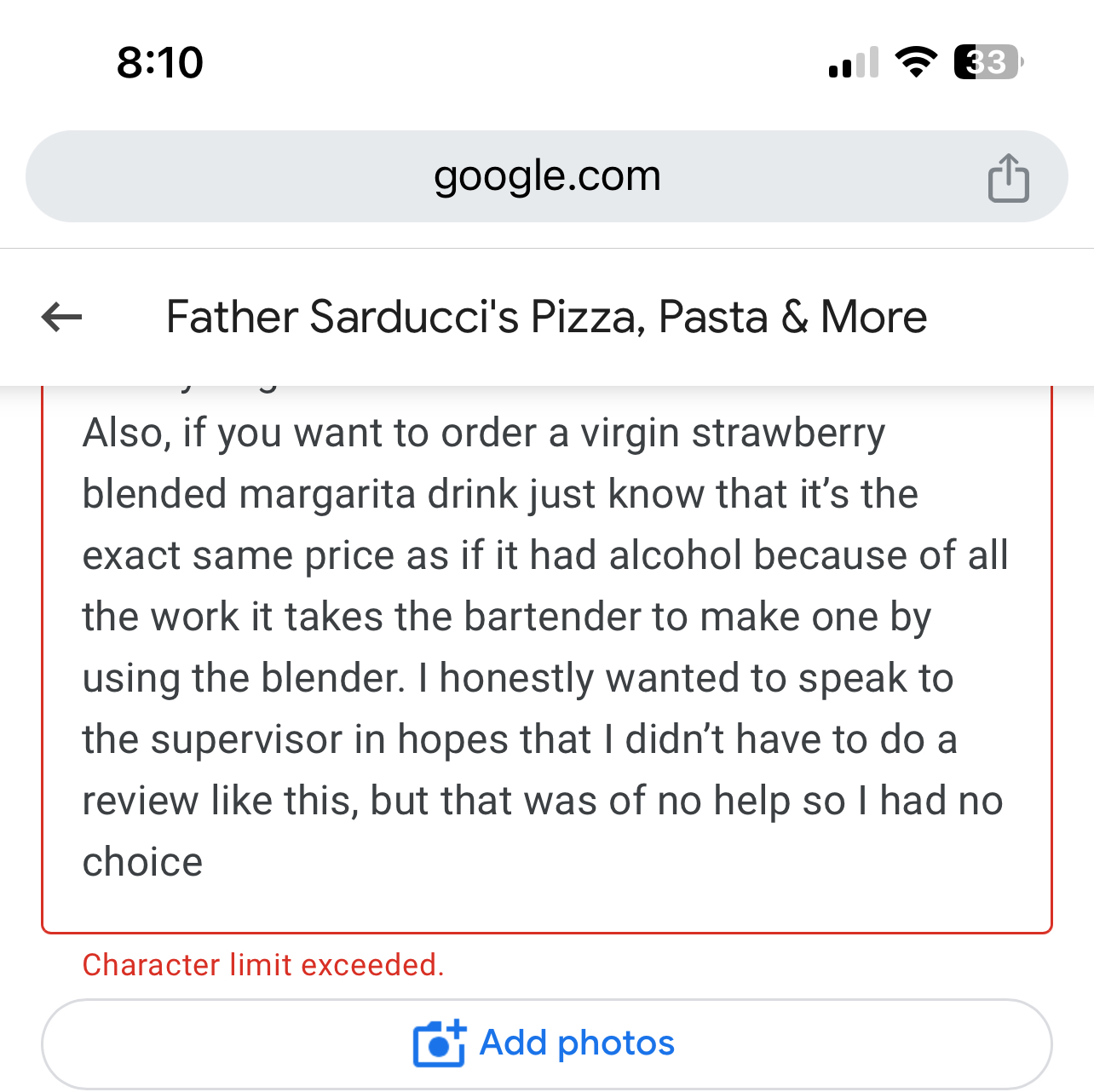 Customer service was okay at first. When My Diet Coke came it tasted absolutely disgusting so I asked for a diet Dr Pepper. She told me it taste nasty to her, but I figured I’d try it because I have never had a nasty diet Dr Pepper so she brought it and it actually did taste worse. Just said I’ll take a regular Coke and that was good. At that point, I noticed a little bit of attitude, but I brushed it off. I was absolutely shocked that my daughter liked her lemonade because it was Absolutely disgusting. Then I was looking at the menu again, and I noticed that there was a price that said $3.69 for soda and a different price that said $3.99 for a fountain drink so, I was curious to see how much was the soda and lemonade we got, especially because I had Enough money for the food plus tax and plus tip Being that I already had researched the prices on the menu before coming. So when I ask how much the soda was, they said $4.44 (before taxes) and on the online menu it says $3.69 so when I asked why they explained that after 4 PM, the prices go up explain to her that I came with just enough money for the amounts that were a day ago on their website and at that point she really had an attitude made me feel horrible and don’t think that’s right. I wasn’t being rude or anything like that and I explained why I asked.etc... So she came back with an attitude, saying they adjusted the price then, after that, I understand they were busy, but we were almost done with our food before she even brought us our ketchup that we had asked for that actually, I asked my daughter to walk up to the bar to ask for it and She came back without it because our waitress told her she would bring it But didn’t for a while. So I felt that that was part of maybe her being bothered that I questioned the amounts of the drinks. Then, when the bill came, I noticed there was a different price on the garlic knots (1.00 more), but the mozzarella sticks $9.99, the Special calzone $14.95, the cheeseburger $13.95, the fish and chips $15.95 all had the correct price. So of course I asked her about it and with an attitude, she just said she didn’t know nor did she say the price went up for that after four also she just said she didn’t know so at that point I said well can you ask your manager? She eventually comes back with an attitude saying she fix it super rude. Nowhere in the website did I read(unless I missed where it said it) that prices go up after 4 PM then I was told the prices are the same if you sit inside, but the fact that I brought any of it up was the problem. I was treated with a bad attitude. That’s why I checked the prices before coming here to make sure I had enough money to come here. So I don’t understand why they would get upset if I’m questioning the price. The website itself said it was updated a day ago so I assumed the prices were correct. now, at the end of it, they did adjust it, but with an attitude, when I asked to speak to the supervisor (bar tender)because of how I was treated, I just wanted to explain The reason of why I was questioning it, and her attitude was even worse, which she proceeds to explain to me that the reason why the prices go up is because they have to pay the entertainment and if I had set inside, it would’ve been the correct prices. I did not know that the waitress told me that at the moment I went inside. So after speaking to her it made sense as to why the waitress felt so comfortable treat me that way in front of my kids.. This has been my third or fourth time here and never an issue but because of this customer service horrible experience today we will not be coming back. But I will say the fish & chips were absolutely delicious. The garlic knots were delicious. The mozzarella sticks were delicious. My daughter really liked the special calzone and my son like the cheeseburger. Also, if you pay with cash you get a discount. The rest of review is on the first picture. No matter the amount of money she should have not treated me like that. I...