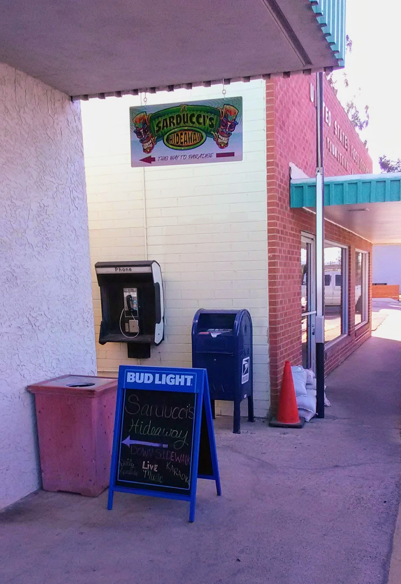 Read moreUpdate: Went for fried fish which came with fries and a little slaw and it was good, but suspect not battered on premises as drier and tougher hard crust than expected. Wish styrofoam and plastic wouldn't be used for the slaw and tarter, and that non plastic disposables be used for the cutlery. Won't order the fish again, but as I stated in original review, calzones are delish. Tiki culture lives on in the outdoor bar which is best accessed by the alley between the P.O. and the restaurant. Started off with a pitcher of draft beer poured into icy cold glasses and then moved on to a perfectly baked calzone filled with ricotta, sausage, green peppers, mushrooms and a very tasty tomato sauce--you can ask for more sauce on the side too. Since they are made up fresh, you'll have to wait close to 1/2 hr., but who cares when you're warned in advance and it's good when it comes? Besides, who goes to a tiki bar to run in and out? We're on island time there! Kick back and relax. Wish they'd rotate in some island tunes though--no need for it to be the only music played, but periodically it would be a fun addition to the ambiance. They said they are expanding the outdoor area, so I imagine that will be a great help for the entertainment and allow...