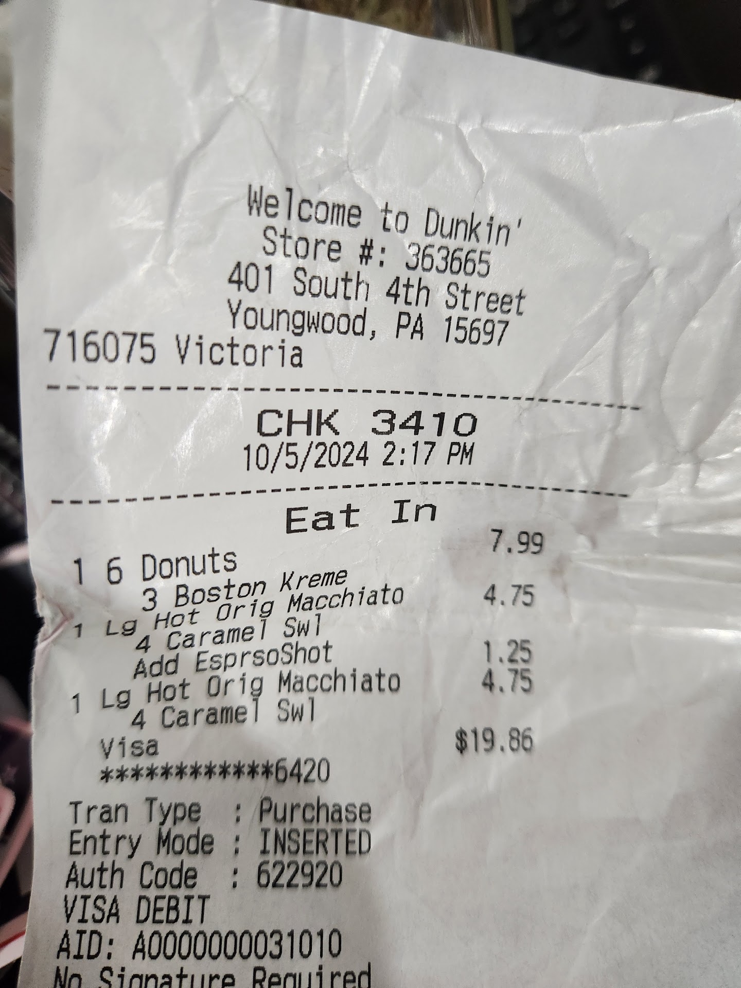 Everytime I go there they never have anything I order but it says they have it and now there no frozen drink and on top of that they never have any dount I get online even through it says it there. It happens to me eveytime I go there they was four people there and still have no dounts that I ordered no she said I have no frozen drink nor dounts that’s I ordered it happens every time I go there will not recommend to go to Youngwood Dunkin’ Donuts at all. not sure if this is a franchise or a corporate store ever since they opened they never had anything I ordered. I keep trying to go back to give them a chance and I’m just wasting my money and then they have it. Tell me they can’t refund without the card payment, even though it was online. try to offer me a hot coffee even though I ordered a frozen coffee I said not everyone drinks hot coffee. if you don’t have it in your store or you cannot make it then maybe it should be taken off the menu so you don’t have people coming in and being frustrated overwhelmed it happens to me all the time would not recommend 0 out of 10. Specially, for the price that I paid...