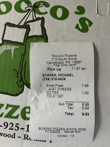 On several occasions over the last year or so I have had less than acceptable food. But the last two times I ordered from Rocci's Pizzeria in Youngwood I got very bad food. The time before last I ordered "cinnamon pretzel sticks" at the suggestion of the person on the phone since they no longer sold the dessert item I used to buy. They were terrible. There was no cinnamon and they were just tough pieces of inedible bread. The last and final time I received my order and opened the pizza box and could tell just by looking that it was bad. The crust was thinner than usual and was flat, as in did not appear to have raised at all. The toppings were minimal at best. I tried to eat the pizza but the crust was inedible. All I could do was pick the topping off and eat them. Given that they had changed their menu and NOT updated their website menu I asked for a new menu. One was not delivered. I posted a review on facebook which prompted someone (the owner maybe) to deliver a menu and $10 gift card to my door. Too little... too late.. too many times of subpar quality food. In my opinion the problems with the food stared when they opened their second store. A real shame as I really used to love their pizza. I don't understand why it is not possible to buy pizza that is...