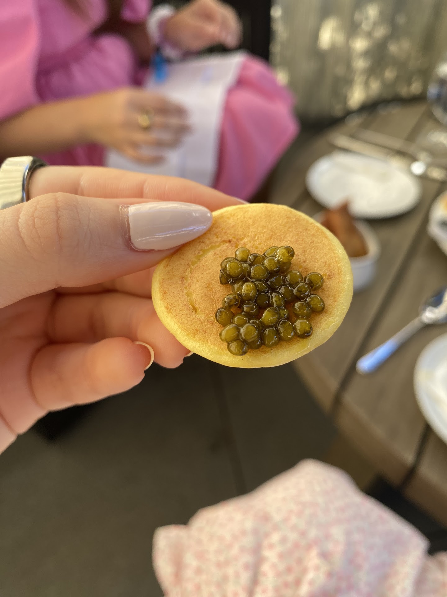 Read moreI am a huge fan of Thomas Keller and was really excited to come here! I was greeted by a woman who kept on asking me if it was a party of 4 and I kept saying YES, when there was clearly 4 of us standing together (we were the only ones standing there). It wasn’t in a way that she kept forgetting, but in a way to just be mean. It certainly wasn’t the warmest welcome, especially for the money I was about to pay. If you come on weekends SIT OUTSIDE! It’s 20 dollars per person extra to sit inside, the patio is beautiful! Once we sat down, our server was super friendly, which is a huge relief. Definitely get the caviar tasting and add on the golden osetra for an extra 20 dollars. The garden vegetable crudité is beyond good. It’s super simple and the green goddess dressing that comes with it is really refreshing. The pigs in a blanket are OK, and skipable. The scallops are yummy and also have a delicious green sauce. The fried crab is also good! I really love it here, but the rudeness I experienced at the start left a bad taste...