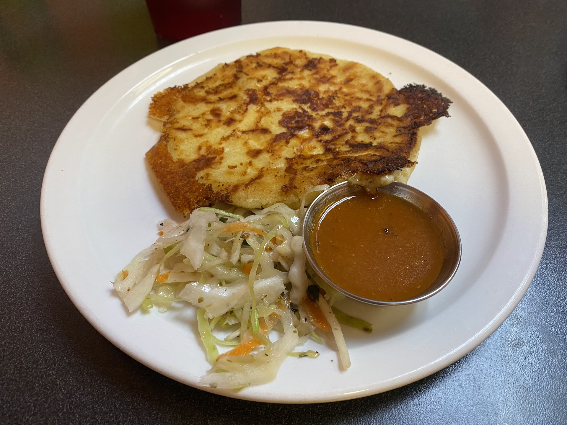 …Okay, maybe it’s a bit exaggerated but still was one of the best things I’ve ever had. The pupusas were also phenomenal, we got the mixed ones. Hot, crispy, delicious. Comes with a seasoned slaw that’s just the slightest bit vinegary, it’s an excellent pairing that’s both fresh and sort of like a delicious palate cleanse.