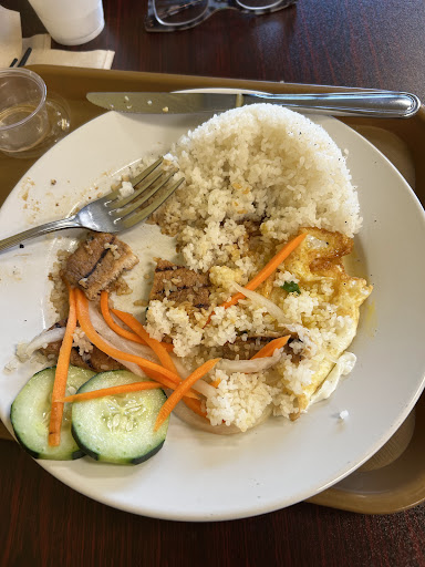 I wanted to treat myself and so I looked in the area and found this restaurant. 4+ stars. I was excited because I missed having the pork chop plate that I was so accustomed to back in SF. I ordered at the counter and a tiny, excitable woman told me they didn't have spring rolls which I thought was weird because they're on the menu . Fine. (Later I asked one of the young employees and they said that they do have spring rolls on the weekends only)