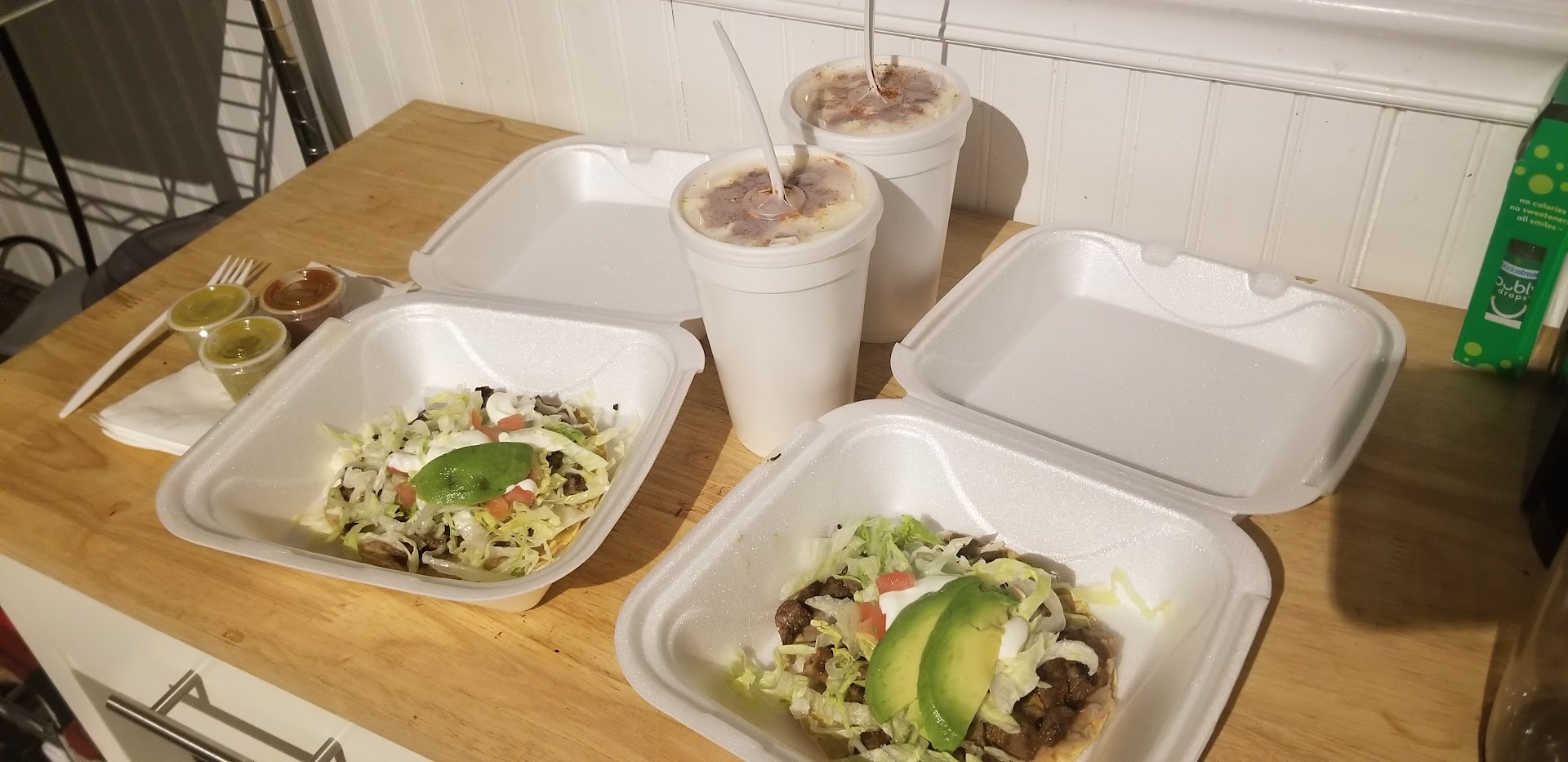 Second time I ordered carryout and got chicken and beef tacos, chicken quesadilla, chips & guac, chicken flautas and of course a aguas fresca! Again - AMAZING!! My only complaint here was the tacos came wrapped in foil so they ended up getting soft from the steam so they fell apart. Still didn't stop me from eating them though!