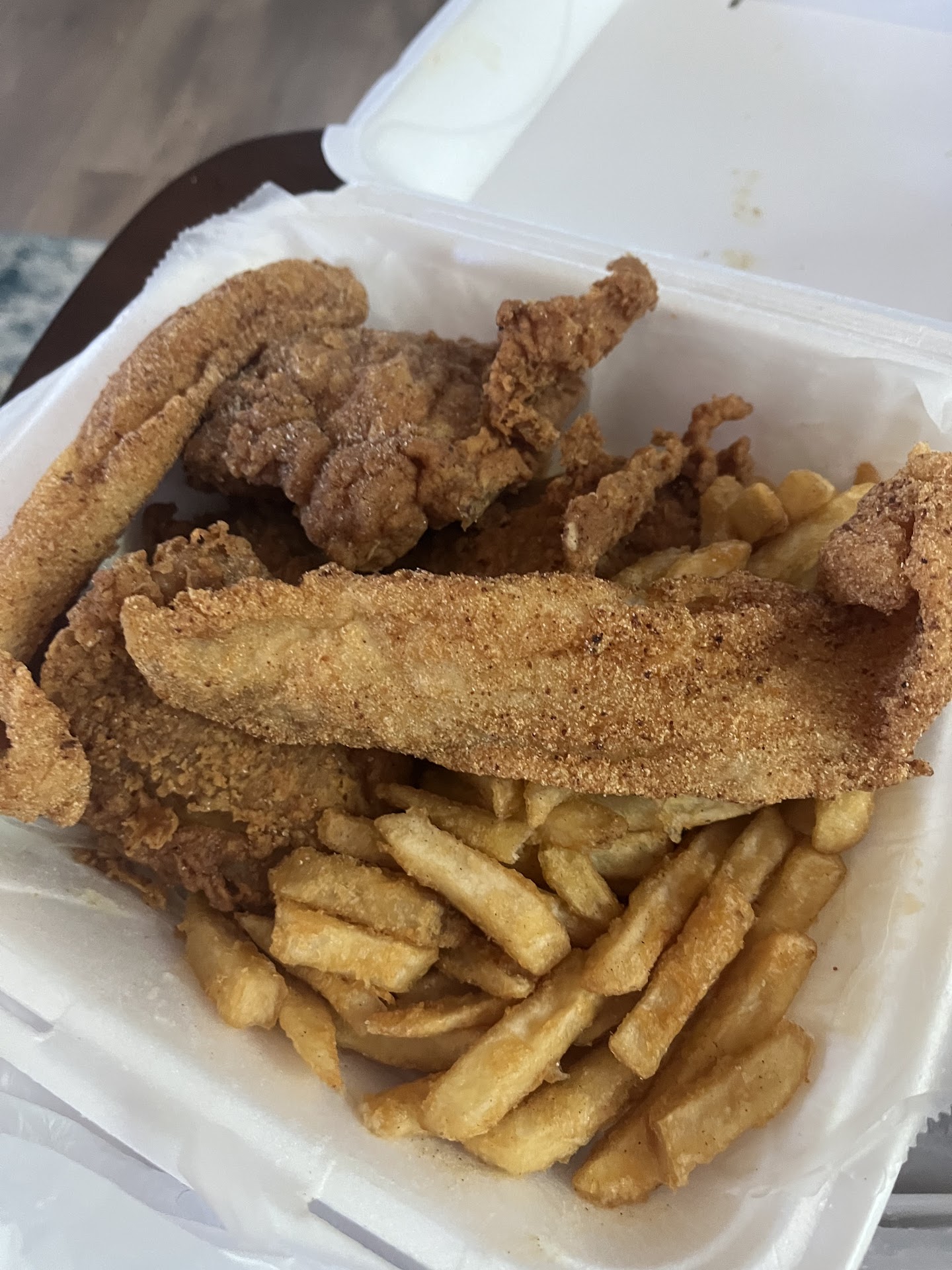 Read moreI placed an order on 4-4-25 at 4:30pm. I ordered 5wings.and extra large shrimp with fries. The person taking the order was nice and I was feeling really confident my food was going to be good.. NOT!! THOSE WINGS WERE SO HARD. THEY LOOKED AS IF THEY'D BEEN RE-FRIED. WHEN I SAY HARD, THEY WERE HARD AND DRY. THIS IS THE SECOND TIME THIS HAS HAPPENED. TO EACH HIS OWN.. SOME PEOPLE MAY LIKE REFRIED, OLD WINGS, BUT I WASN'T EXPECTING THAT AT ALL. I DO NOT BELIEVE IN RETURNING FOOD BECAUSE FOOD TAMPERING IS REAL. I TRULY HAVE LEARNED MY LESSON. I ALREADY KNOW THAT MY FEW DOLLARS ARE NOT WHAT'S KEEPING THEM IN BUSINESS AND I CAN PATRONIZE ELSEWHERE. MY SUGGESTION, IS TO ASK THEM TO MOT OVERCOOK YOUR WINGS AND ASK IF THEY CAN DROP FRESH ONES. THE SHRIMP AND FRIES WERE GOOD ACCORDING TO THE PERSON THAT ORDERED THEM. I HAD TO FIX SOMETHING TO EAT BECAUSE I DON'T EAT...