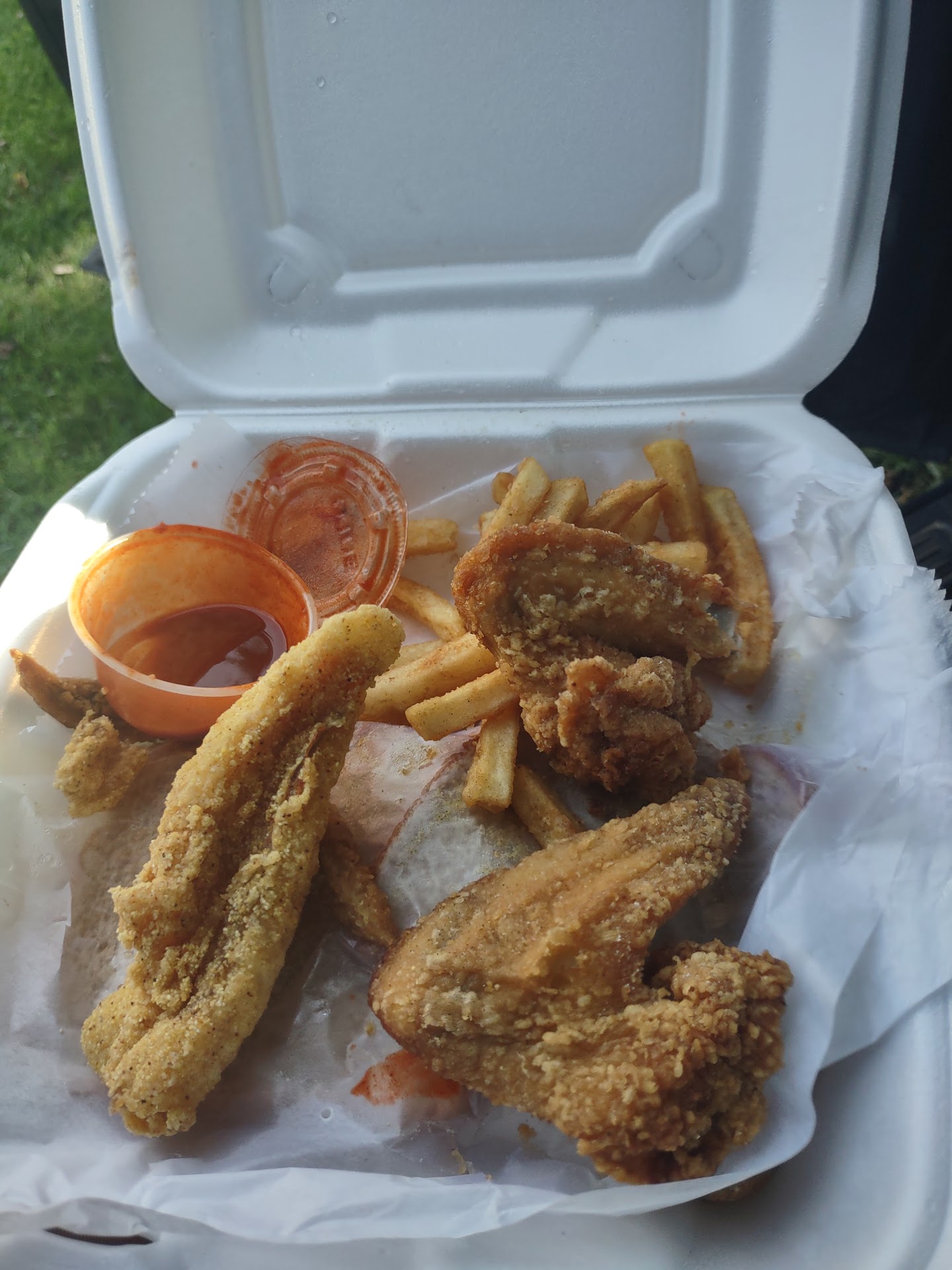 The air hung heavy with the scent of frying oil and seasoned flour, a siren song luring me into Nu Wave Chicken and Fish. This wasn't some fancy bistro with pretentious plates and overpriced wine. This was the real deal, a no-frills joint where the fryer was king and the chicken reigned supreme. I ordered the two-piece with fries, a classic for a reason. The chicken arrived, golden brown and glistening, a testament to the cook's mastery of the deep fryer. The skin crackled with a satisfying crunch, giving way to juicy, well-seasoned meat. It wasn't fancy, but damn, it was good. The fries, piled high on the side, were the perfect accompaniment – crisp on the outside, fluffy on the inside, and generously salted. I squeezed a lemon wedge over the chicken, the tartness cutting through the richness of the fried batter. This wasn't the kind of place you'd find in a guidebook. No, this was a local haunt, a place where the regulars knew to ask for extra crispy wings and the sweet tea flowed like wine. It was honest food, made with care and served without pretense. Nu Wave Chicken and Fish might not be a culinary destination, but it was a damn good place to get a plate of fried chicken. And sometimes, that's all you...