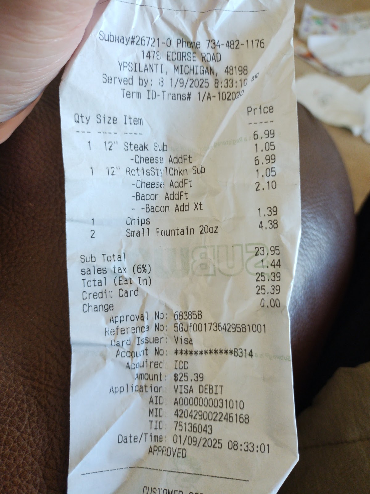Read moreWalked in at almost 8:30 (sign says they close at 9:30). Same guy working ( not Jacob) in there with the same nasty attitude he has every time I go in there. They were out of one of the breads we wanted. My granddaughter did not want another option. My husband and I were going to order and take her somewhere else. This guys snarky little comment to his co worker changed our minds and we left. Additionally he called the coworker from the back for help with 3 subs, clearly couldn't handle it on his own. Same night went to another subway that closed 30 minutes earlier, 1 worker, completed our order in less than 10 minutes without any snarky comments. Pleasant actually. Both locations we were the only customers in the store. Will not be returning although it is...