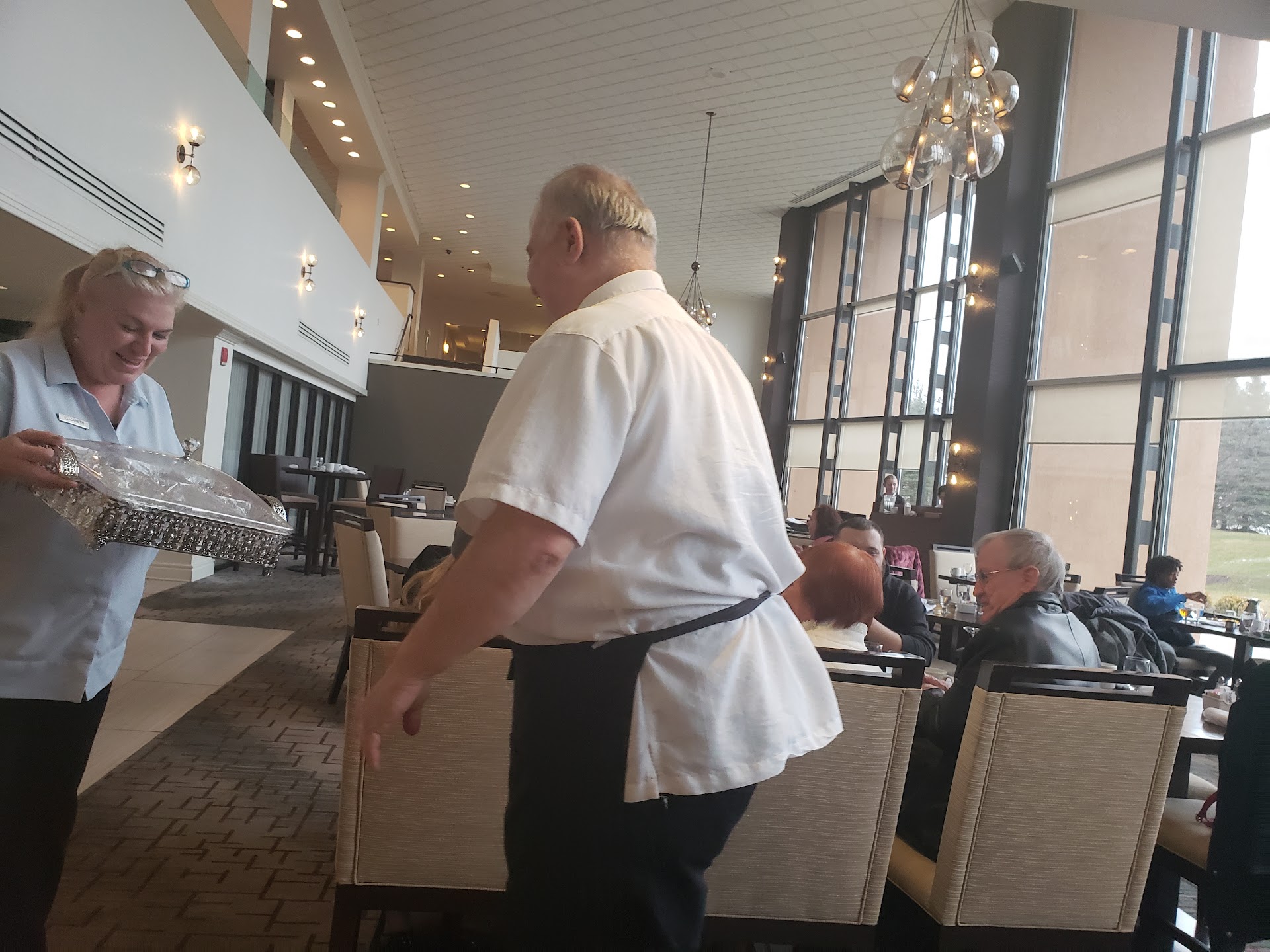 Seems to be a lesser known brunch buffet. We ate here on Sunday 10:30-1130 and there were only 3 other groups. The food was average. Highlights included the very well seasoned biscuits and gravy and pork with a mustard sauce. There was an omlette bar as well as shrip, clams, muscles, and salmon. They also served french toast, eggs, bacon, sausage and potatoes. Lunch items included country fried chicken, ratatouille, and a seafood chowder. I'm more of a breakfast person so didn't try this. Dessert bar had cheesecake and poundcake which were pretty standard. I thought the price was high for the meal (21.00 per person). I did appreciate the view of Ford Lake and the drinks were good (coffee and mimosa-the mimosa...