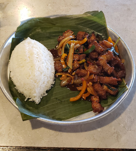 Pork Belly & Basil stir fry - spice level mild - overall very good. Pork belly isn't for everyone, but this was very well made. Get it with a fried egg and mix everything together with the rice.