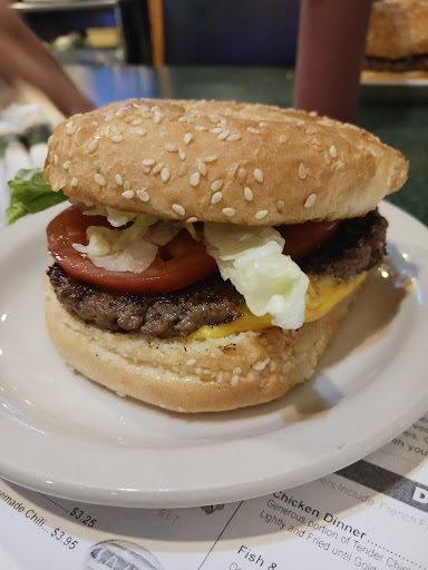 Read moreGreat local Burger Joint Service at this place is exceptional. It is primarily known for it's burgers, but I don't eat red meat. My companions however were quite impressed with these. I have had both their shrimp and their fish sandwich at various times, despite their obvious distance from the sea, these were both very good...especially for a burger joint. The shrimp were a decent size and the fish was not coated in extra layers of breading. Both were presented well with fresh condiments. The onion rings were the best I've had in years. They also always have a fresh soup. Don't go here for "healthy" food, but if you are a burger person, or if you just like to occasionally indulge your craving for fried anything, this is the place. It is also the place if you support locally owned small business. Becky Fox, one of the owners is one of the most delightful people you will ever meet...