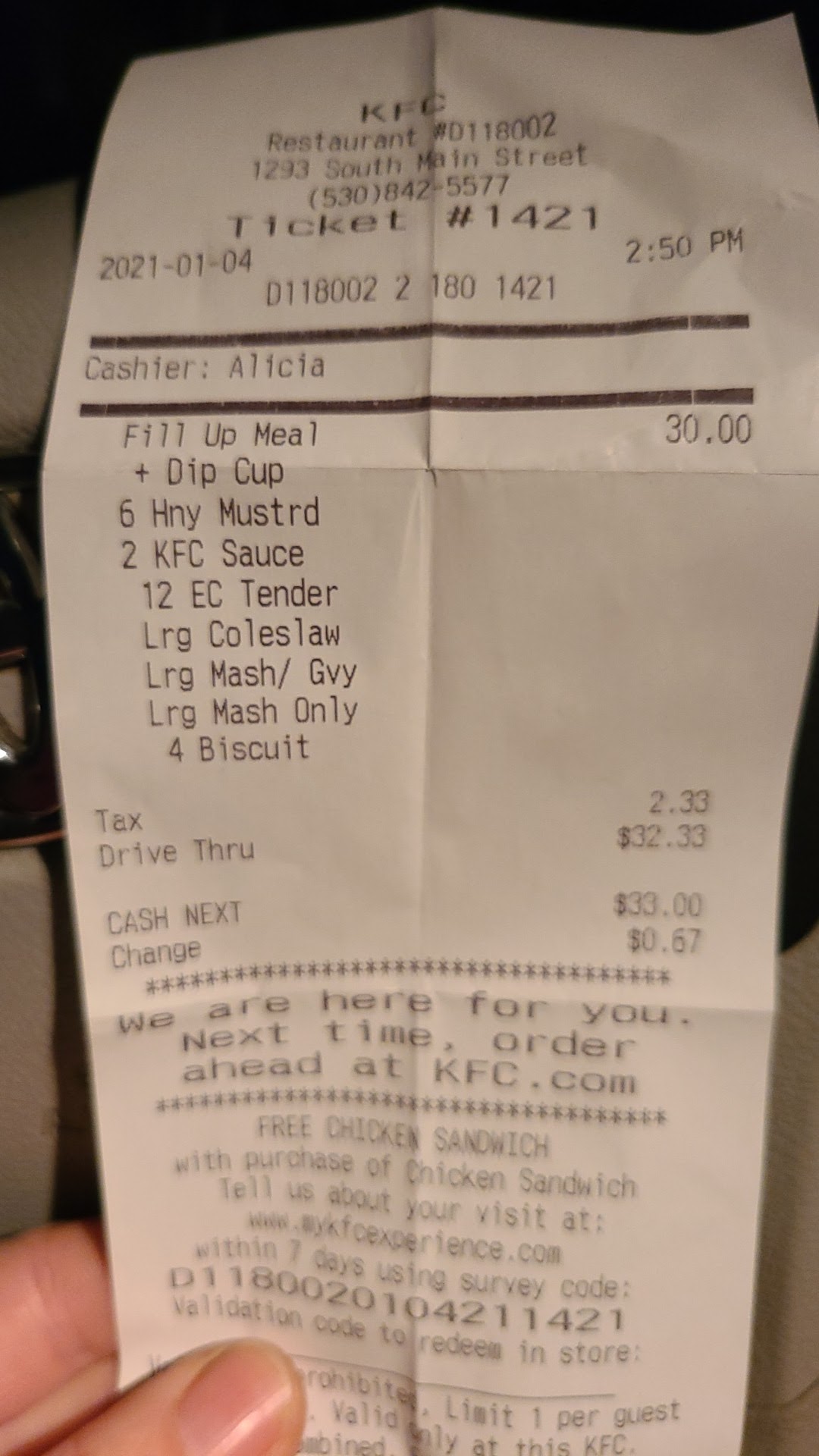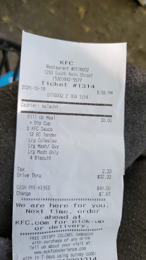 Read moreI went to drive threw to get lunch .....What an awful surprise that was! KAYLEE was working at the drive threw.So I placed my order then saw what I thought was a better deal only to find out it only comes with the meat No sides.So When I went to pay for my food KAYLEE had a fit when I changed my order! I asked her to refund me for the order and I would like the first order.Well she had a fit! Walked to the back where foid is prepared then said, I don't know how to do this🤔Duh! Then she slammed the window shut and told "You need to go" Totally refusing to give me any food or the receipt for food she charged me for and a refund!I insisted on getting the receipt stating I'd been refunded! YOU KNOW KAYLEE YOU NEED TO GO YOU POS! I will Never go back again! I hope KFC gets rid of you ! When it comes to employees you are the bottom of the barrel! That is...