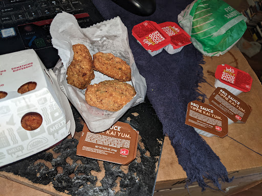 Read moreLike with most fast food places, I have good experiences and bad ones. So its hard to give an accurate review. This JIB was the only place that could ever get my daughter's order correct: burger, no cheese, ketchup only. NOBODY GETS IT RIGHT. Usually I find on my receipt its the cashier that gets it right, and its the cook who doesn't. And our recent visit to JIB was no exception. He clearly put the cheese on then realized it shouldn't have cheese on it, so he took it off. But it was a bit too late cuz her burger had bits of melted cheese on the burger and the bun. Also, they forgot her ketchup. It wasn't hard at least to take those bits of cheese off for her though cuz the burger wasn't even warm! And I'm also guessing the fries were undercooked, cuz they were still frozen together in clumps, and warm (not hot) when we got our clump-o'-fries, but cold when we got home 5 minutes later. So why am I giving them 3 stars still? Because this is only the 2nd time this JIB has screwed up. Although cold burgers and undercooked fries? This was a pretty...