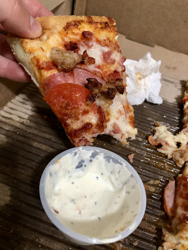 Read moreOrdered a pizza online. 45 min later pizza was delivered. Got it to the table to see that they had given us the wrong pizza (ham and pineapple). We ordered (pepperoni, mushroom, & olive). As you can see not even close to what we had ordered normally I'm not picky but I don't like ham and my family doesn't like pineapple. When I called the lady was alnoce and apologetic but all of their drivers were busy so we had to wait another 45-60min just to get the correct pizza. We got no kind of discount or complementary items or a coupon. So turned out we had to throw away entire pizza and wait almost 2 hrs just to eat dinner. Pizza was good but I think I'll stick to the usual place...