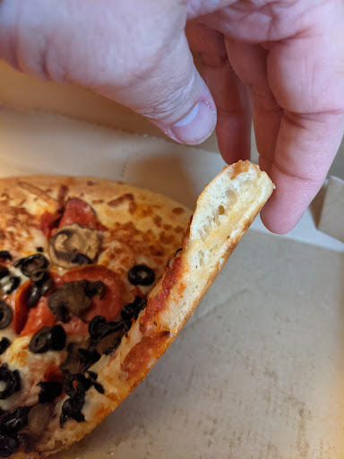Today I walked in to pick up our online order and after taking my name to find the order, the person behind the counter walked around yelling my name and repeated this 10-15 times. He was unable to find my order the first time and then repeatedly asked if my order would be under another name, which it wouldn’t be as I placed it with my app and with my card. The manager seemed barely interested in helping him resolve this issue in a timely manner and he finally located my pizza in one of the other pizza portals he hadn’t bothered to check initially. Overall the interaction was super uncomfortable. The order itself is also incorrect which is disappointing to say the least.