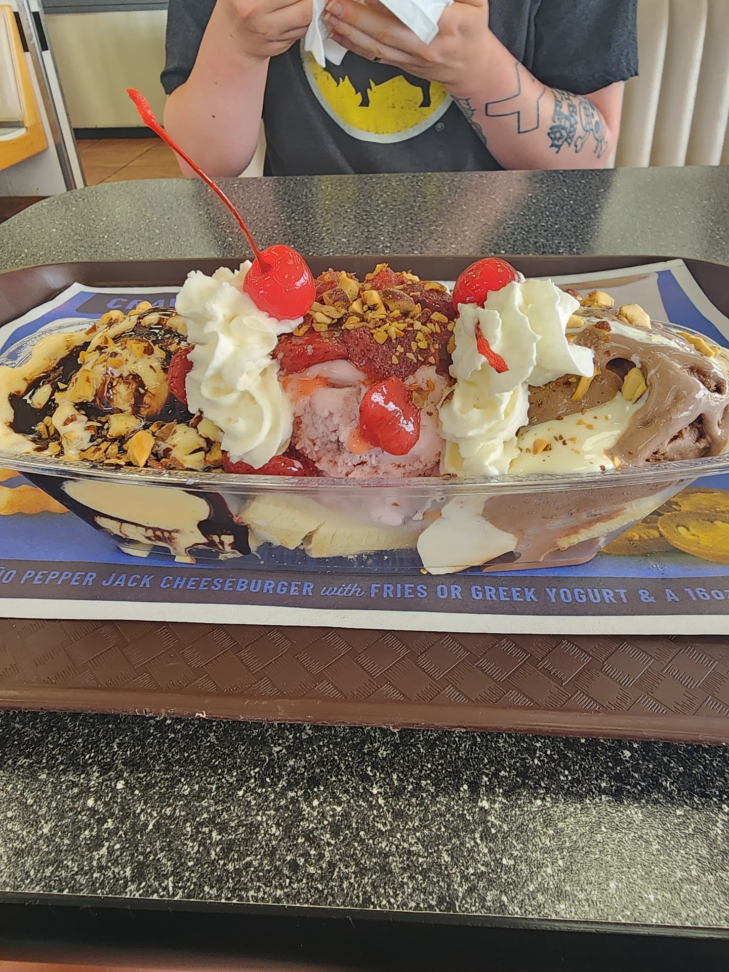 Read moreMy brother chose this place as it's been quite awhile since we've been here. When we entered there was no employees in sight, we just saw a couple of people shopping in the Dairy Store side. We went to the counter and studied the menu while waiting for someone to appear. Finally, a young lady showed up and began to take our order. I don't know if there was a lot of noise in her headphones or what but I had to keep repeating our order 3 times. My mother and brother wanted cottage cheese as their side instead of french fries and she thought I said to put it ON the burgers. So I had to explain again that was their side orders. REALLY!!?? I guess 3 customers was too much for her and was about to lose my patience but instead we finally got through it and paid, then went to pick a booth to sit down. When our # was called and my brother went to pick the tray of food up and returned back to the booth..and they had forgotten the cottage cheese completely. When mom went to go get it the man wanted to see her receipt like we were the famous cottage cheese thieves! Needless to say, I wasn't impressed and all though the place looked clean, the service was horrible. It'll be quite a long before...
