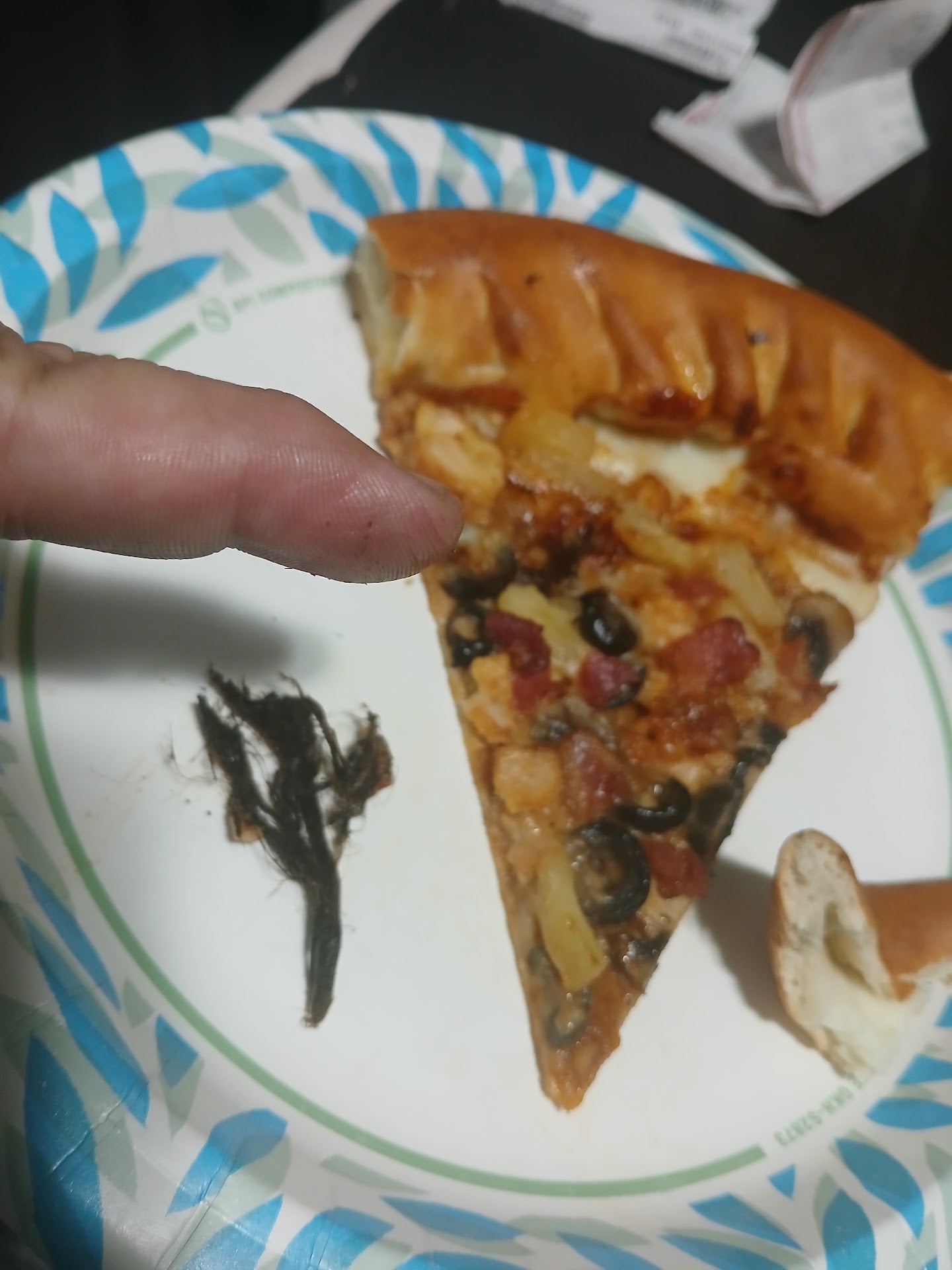 I made an order on the app. Got my order. It had a fairly large bundle of hair. Right in the middle of a piece of pizza. I called the store to make a complaint which I don't do very often, but as to the amount was vary large I decided to call. First person tells me they are having technical difficulties and I need to call back. I let her know I'm calling with a complaint and I need a manager. She says ok, and withing 10 seconds the line disconnects.