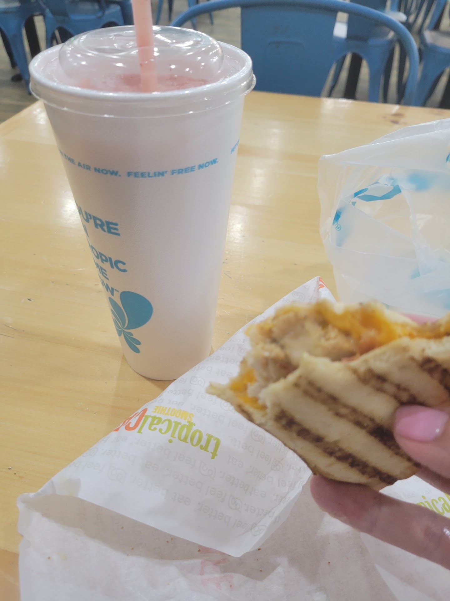 Read moreI have visited this location multiple times before choosing to write this review. I'm a firm believer that friendliness within customer service has not gone by the wayside in society but to visit this particular tropical smoothie Cafe, it clearly has. I often stop at various tropical smoothie cafes throughout my week because I'm obsessed with the detox green island smoothie, however the only location that seems to be venominantly against friendliness, eye contact or anything that might make up a positive customer and employee interaction is this location. It's also the only location where I order an egg wrap where the eggs are mushy and grainy in texture and anytime I order extra of anything on the wrap, they take it to mean more of a silly request than something that a paying customer is requesting And I am left without. I think I'm just finally over this location in general. It's never a pleasant experience and they seem to have a different business model than...