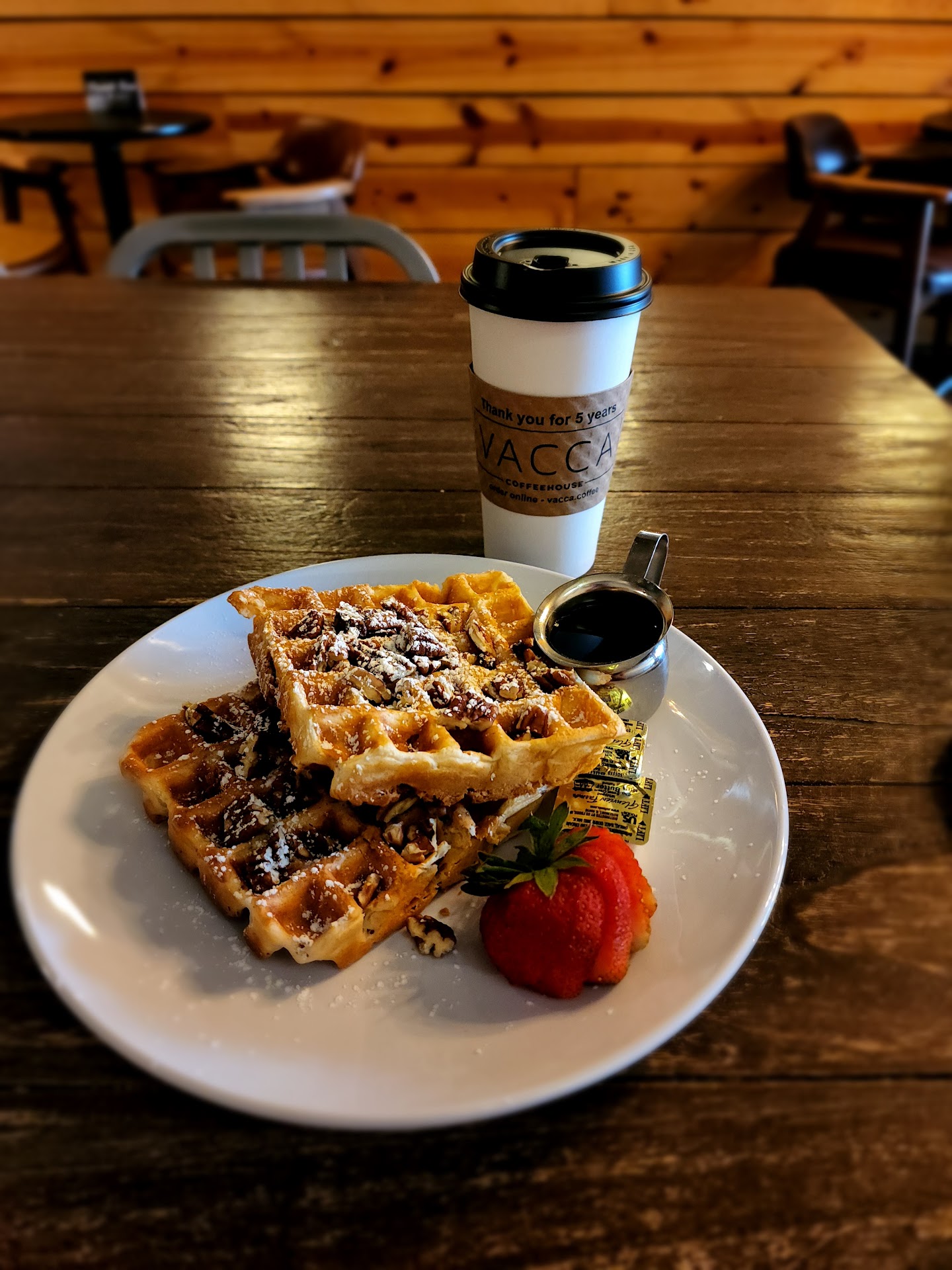 This review has been a long time coming! I am a wedding planner and I live in Piedmont so I needed a place to take my clients for meetings. I tried Starbucks, McAlesters, etc. but they were all too loud and I didn't feel comfortable being there for more than an hour or so. I needed a place that wasn't my office but that I could feel at home for those days when I have meetings back to back to back for 8 hours straight. I also needed a place that was open later than 6pm. I stumbled upon Vacca with a quick Google search and I FELL IN LOVE! The coffee tastes great and gives me way more energy than Starbucks ever did. It also helps that they serve yummy substantial food because otherwise I would only be eating Iced Coffee all day long. They have a large menu and are super friendly which makes it easy for people who aren't coffee experts to feel comfortable enough to ask questions. There is plenty of seating for you and a guest or a whole group of 10. The vibes are cozy and clean. Management is always making improvements like their new loyalty program and menu! I'm happy to call this place my home away from home! If you're looking for a coffee shop, LOOK NO FURTHER! THIS IS THE...