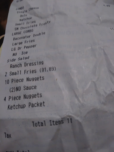 Read moreCame here to get food for my family , ordered my meals and asked for baconator fries instead of regular ones and paid for them, when I gave him the money he dropped half of it and I didnât receive my change back. And to top it off my order was wrong.didnât receive my baconator fries , my baconator burgers only had one patty on them. And both of my fries where half empty I literally combined them and it filled one container barely to the top. Super inconvenient when u pay for something and itâs completely messed up especially when ur not close to the location and have to load and unload ur children. My money is already tight. I donât need to pay for things if Iâm not going to receive . Keep in mind I was the only one in the line and lobby was completely empty. They werenât in a rush or overwhelmed they just didnât care enough to do theyâre job. Wonât...