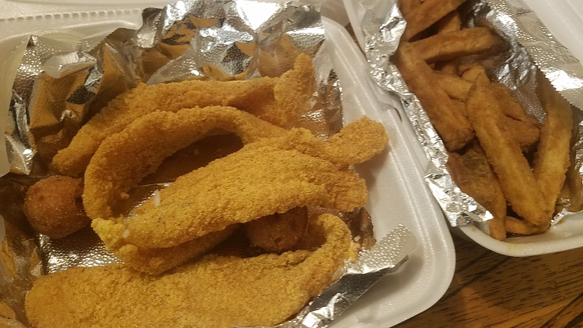 Read moreI am from the MS gulf coast about 45 miles from New Orleans. I was so excited to see a place that served po-boys. My husband and I got a shrimp po-boy, fish and shrimp platter, hush puppies, okra, baked beans and two cocktail sauce. The hush puppies, beans and okra were delicious, although it had to be heated up, however, the shrimp, was not shrimp. It was in the shape of a stick in the platter and in a round disk on the po-boy, which only had four, and the cocktail sauce was just ketchup. I understand you can not get fresh gulf shrimp in Oklahoma and was not expecting that. But nowhere in the world is there stick shaped shrimp. Clearly, it had to be shrimp pieces processed and pressed together. It was a huge disappointment, the food was cold, and I will never eat...
