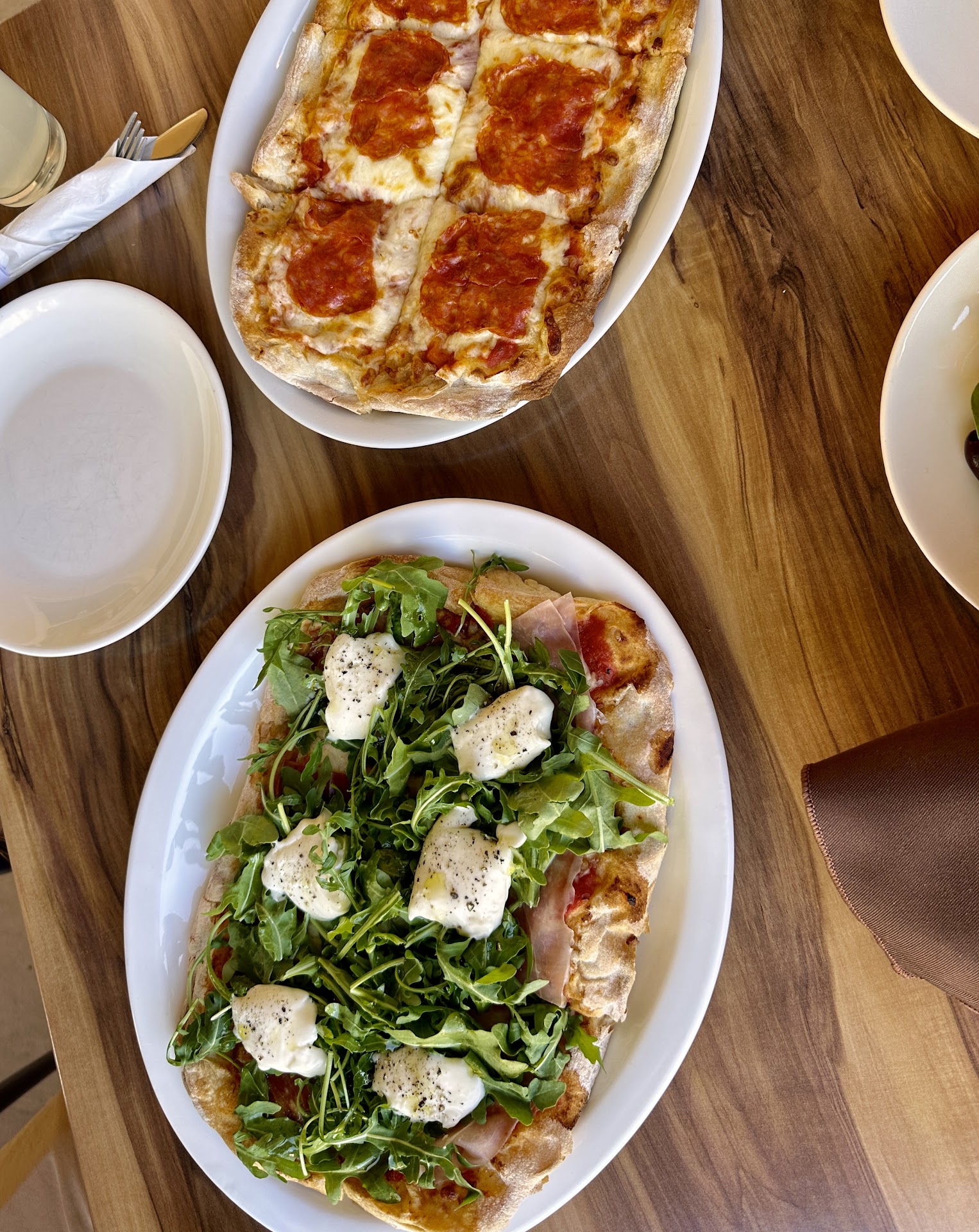 My mom and I shared the veggie salad, caprese antipasti (comes with delicious bread) , and a slice each from the slice menu. The textures and portions were just right (no watery or oversalted dishes here!)