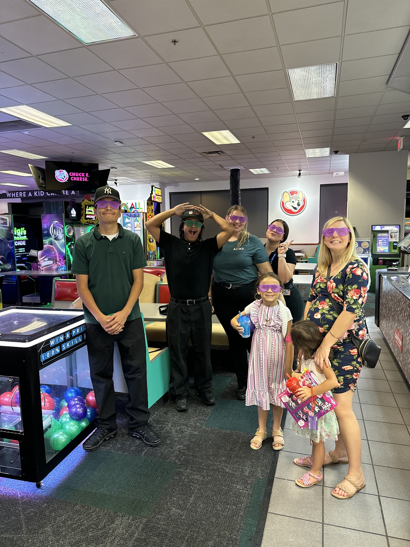 We have never hosted a birthday party here so didn't know what to expect. I don't know why I was surprised but I was. To the amazing staff who took care of us from start to finish , thank you. They were kind, professional, and ensures that every kid that wanted a picture with Chuck E got one. They made the birthday boy feel special and us at ease. When they called the confirm the online party reservation, I was able to preorder food. They had the pizzas prepped when we arrived and had us tell them when to put them in at our convenience. This made sure we are them when we were ready. Besides all the kids loving it and having an amazing time, one of the best things I saw was something that if you were paying attention to, it could have been easily missed. One of the workers was being nonchalant as we walked through the arcade area. He was going up to all (or pretty close to all) the games and putting credits on them so kids could play for free. And not just one credit, several credits. I thought this was such a great thing to see and is so effortless by the establishment but meant to much to kids who got to play for free. I tip my metaphorical hat to Mr. Cheese and his staff and again...