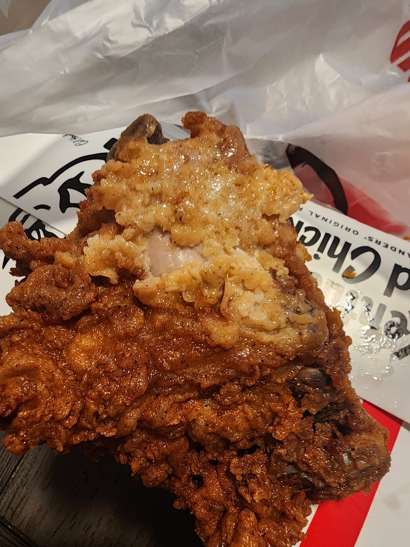 Idk who's working at this location these days but every time we ask for a mix of original and crispy, white meat only, they give us a mix of white and dark meat. And we were asked to wait near the exit for them to bring it out (about 15 minutes) and they still got it wrong. Please, triple check your orders if you come here because who knows if they got it right. Another thing I'd like to add is that they always serve slimy, pink near the bone, undercooked looking chicken. I know the chicken is supposed to be moist, but not to that degree. If I have to wait longer for golden brown chicken and not that light brown, soggy mess that they usually...