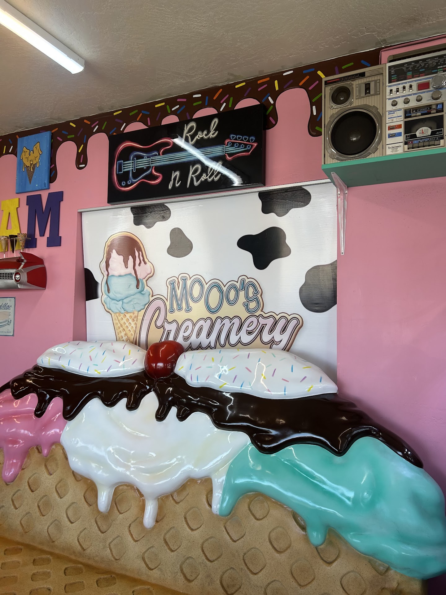 Read moreSaw the reviews that compared this place to LB Creamery in CA which I frequent, so that is a tall order. We stopped by on the way back from Phoenix to test them out. Got 2 scoops, one of the Rocky Road and one of his new flavor - Nutella with Oreo and brownie. This confection is so creamy and tasty that it was actually on par with LBC. Amazingly, the dairy he uses comes from one of the best vendors on the West Coast and you really can taste the difference. My kid got the mint choc chip which he said was incredible and the root beer float which was super refreshing after a long road trip. Do yourself a favor and stop by Mooos, they’ll make you feel right at home no matter where you are stopping in from.