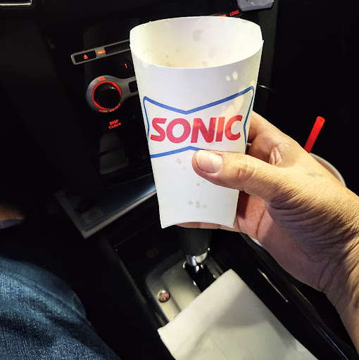 Worst drive thru I've probably ever been thru. Off peak hours 2 cars parked waiting for orders I assume. One car in front of me at the pay window. I order a Sonic Blast and a small fry. I pull up to the window as the person in front of me is pulling away. I wait 8 minutes before someone comes to the window to collect my money for my order. Then I wait 5 more minutes for my change. I ask the employee "why is it taking so long"! She said the manager just left and they are short staffed. 6 minutes later she brings my Sonic Blast! 3/4 of the way full and not mixed or blended good. I asked why is my Sonic Blast like this and she said "oh I don't know it's usually filled to top, I can go ask someone. By then I was just ready to get out of there. As I'm pulling away I remember my fries that I ordered weren't given to me. So I pull up so the 1 other car behind me can pull up to window. I get off and go to the big window and I see 5 kids standing around in the back, one of them eating and a older woman sitting down talking to them. When they saw me they started to scatter like roaches and started working on something. 4 minutes later someone comes out and asks if I needed something. I said yes you forgot my fries! 3 minutes later they bring my fries. I told the employee 26 minutes for a Sonic Blast and small french fry is just ridiculous! I asked if there was a shift manager on duty. The employee said "no I'm sorry that it took so long would you like a free hamburger or fry's or a drink". I can only imagine how long that would have taken. 8 employees and it took me 26 minutes for my order! Horrible service! There is a Hamburger Stand fast food restaurant half a mile away and a KFC, Taco Bell, Carl's Junior, Jack in the Box right down the street. I highly recommend...