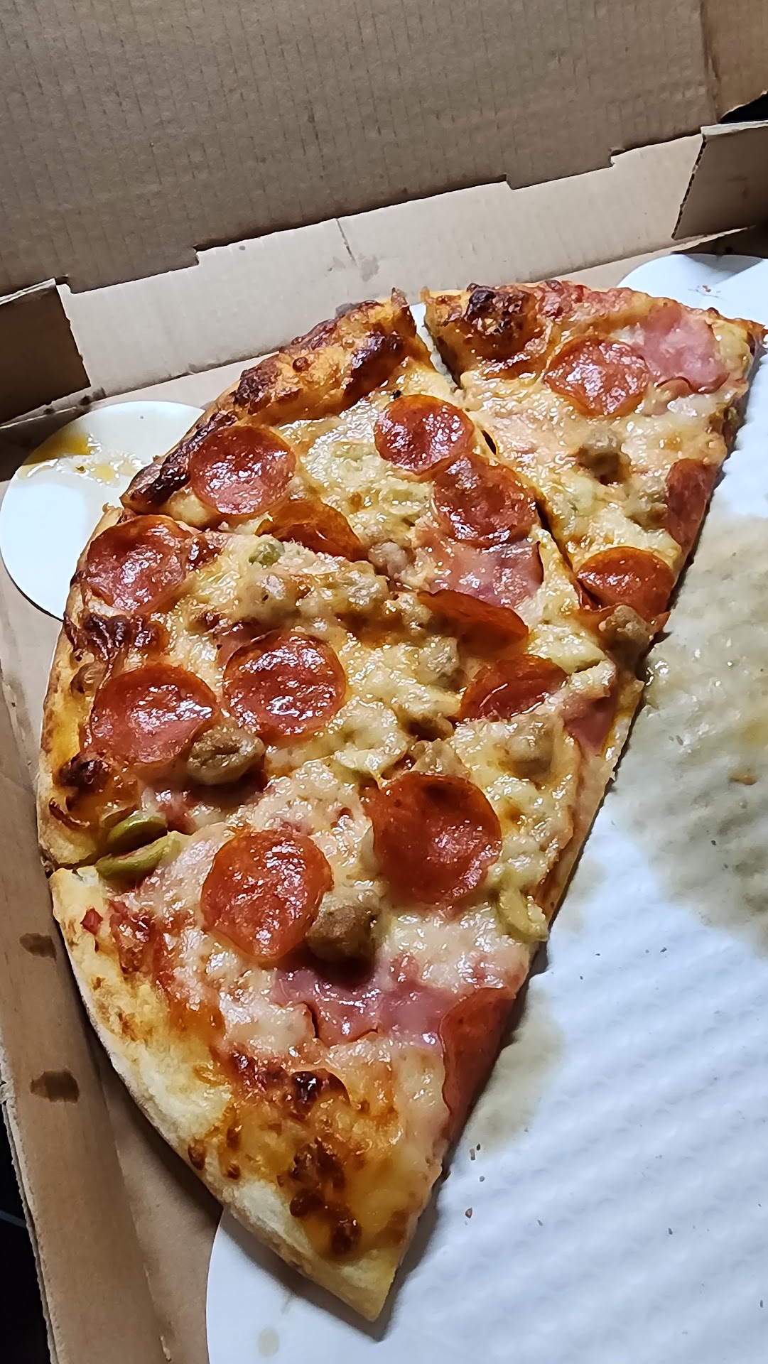 Read moreI got classic Classic Cheese (14") with pepperoni, sausage, ham, green olives, and extra cheese. It was really good... Really, really good. The crust had a great firm texture with the right amount of chew. The toppings and cheese were very good. Cheese had the perfect taste and texture. However, the center of the pie (tips of the slices) were floppy. That was my only complaint and the only reason I didn't give 5 stars. It was good enough that I will try it again and hope that it was...